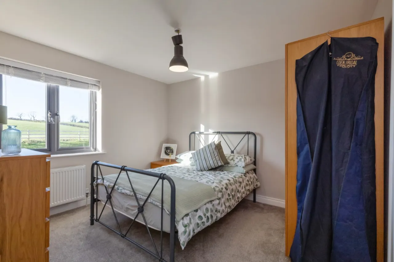 Ceramic tiled floor, triple aspect, countryside views, uPVC double glazed French doors to rear enclosed garden.
