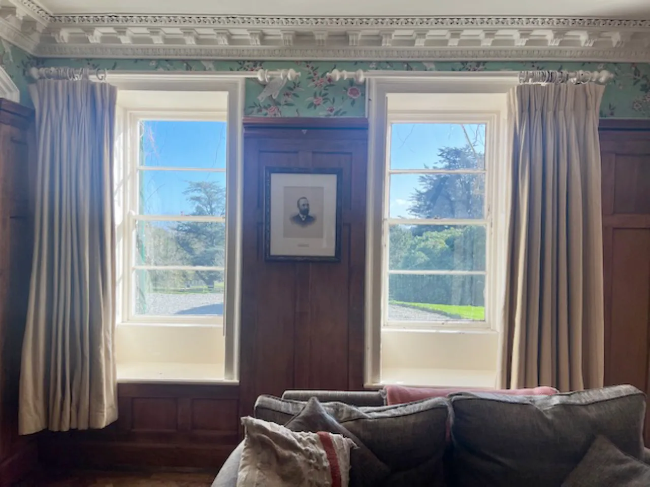 Cornice ceiling, picture rail.