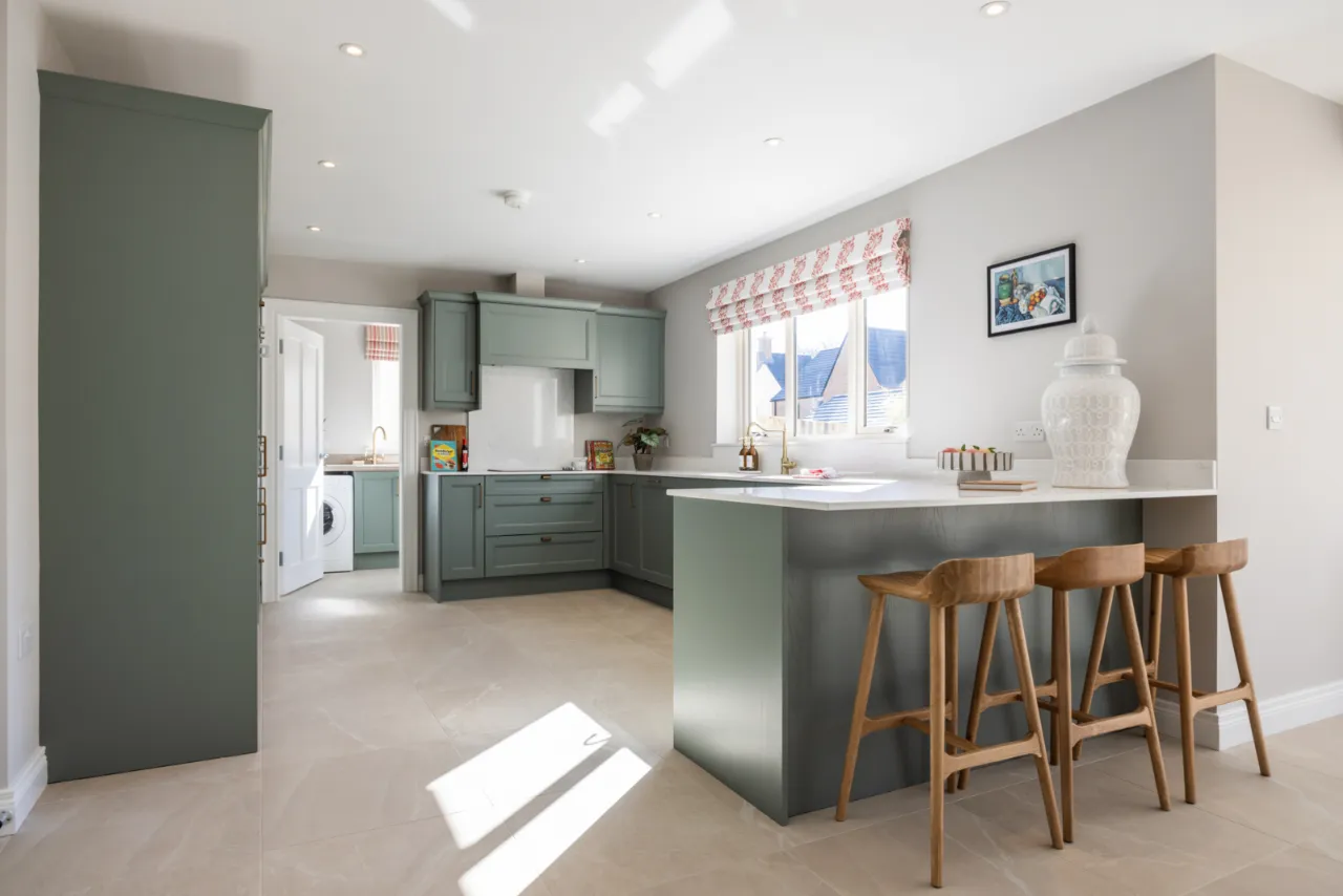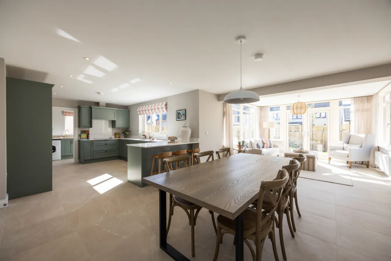 Site 66 is one of the “Hargreave” style detached homes offering excellent internal space with a two separate reception rooms to the front of the property which includes a lounge with feature bay window and stove and a bright, spacious open plan kitchen/living/dining room to the rear with a separate utility room. The kitchen has been carefully designed for this show home and includes a number of specification upgrades along with additional units.