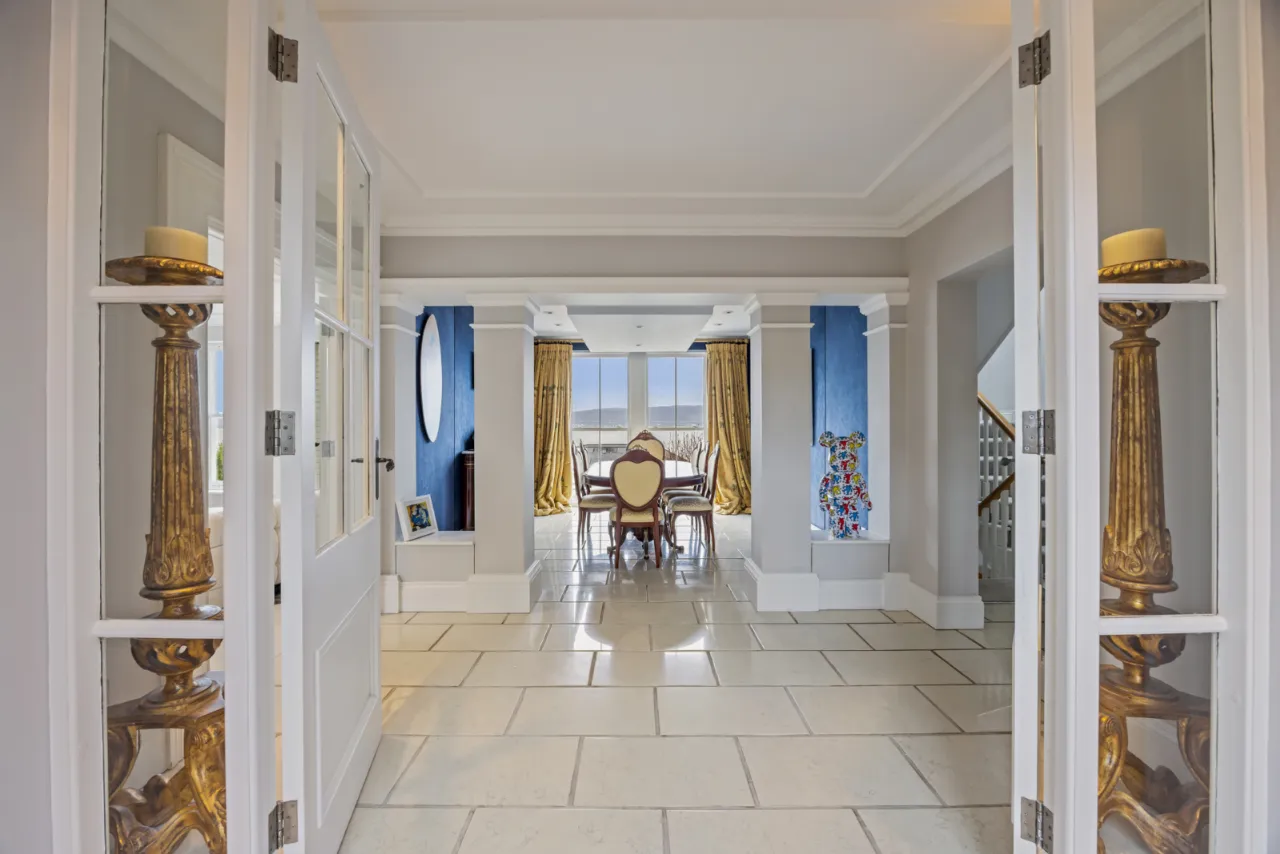 Natural stone tiled floor. Corniced ceiling. Mood lighting settings. Double picture windows overlooking gardens, Belfast Lough and the Co. Antrim hills and beyond.