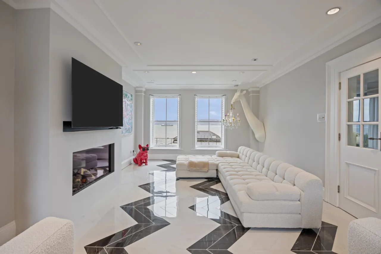 Corniced ceiling. Low voltage lighting. Panoramic views over Belfast Lough. Wood effect tiled floor.