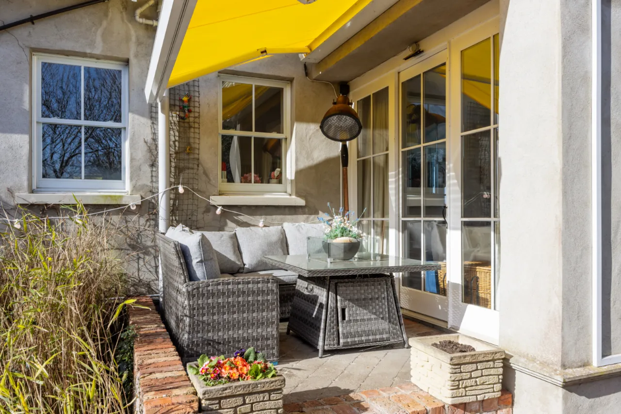 Corniced ceiling. Double opening hardwood glazed panelled doors to rear gardens and patio area. Under stairs storage cupboard.