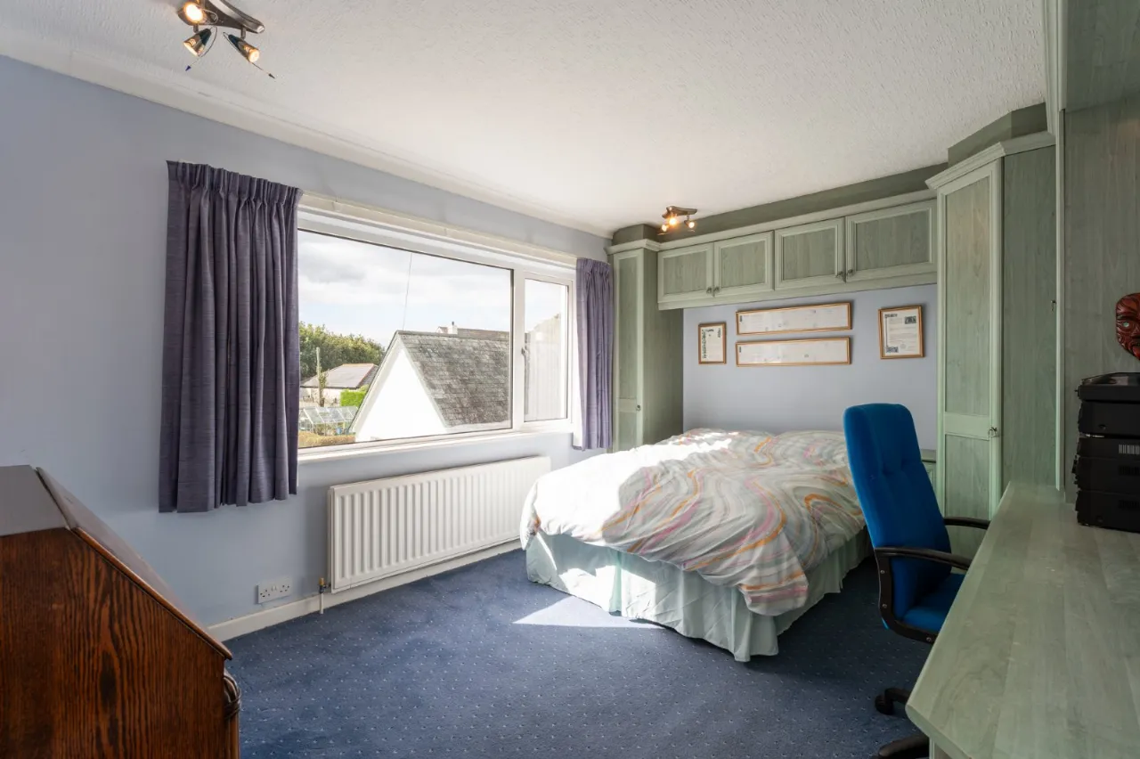 Excellent range of built in furniture including wardrobe and dressing table, built in cupboards, study area, outlook to garden and Copelands