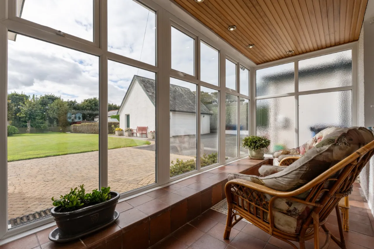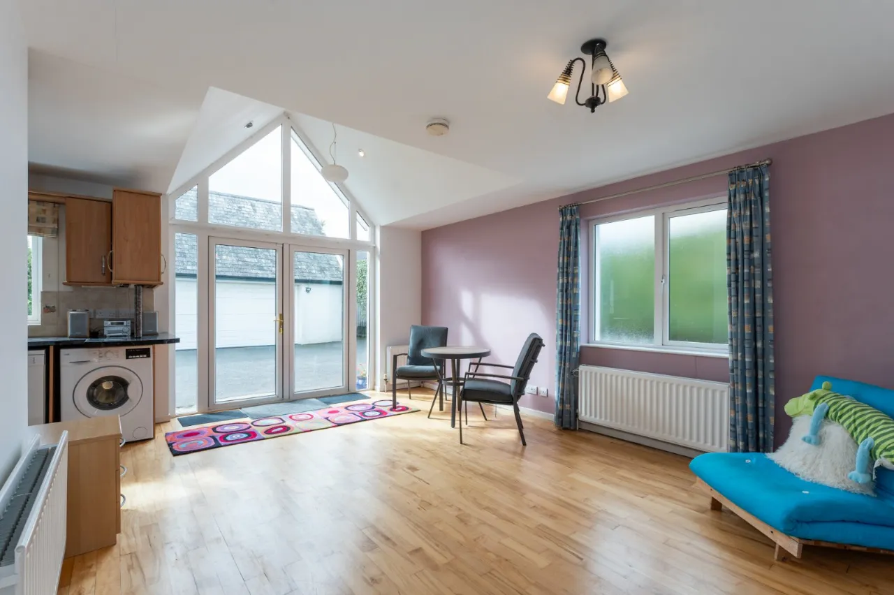 Solid wood floor, uPVC double glazed door, large hotpress with copper cylinder, outlook to garden and outside