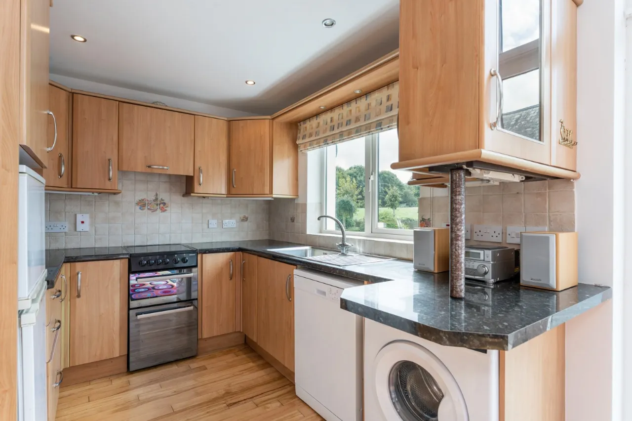 Excellent range of high and low level units, wash room, plumbed for washing machine, space for tumble dryer, oil fired boiler. Hardwood door to reception hall, copper cylinder, built in shelving