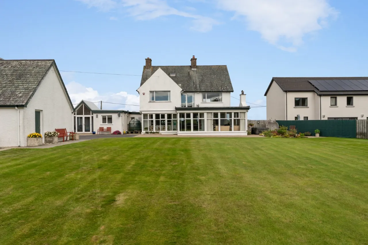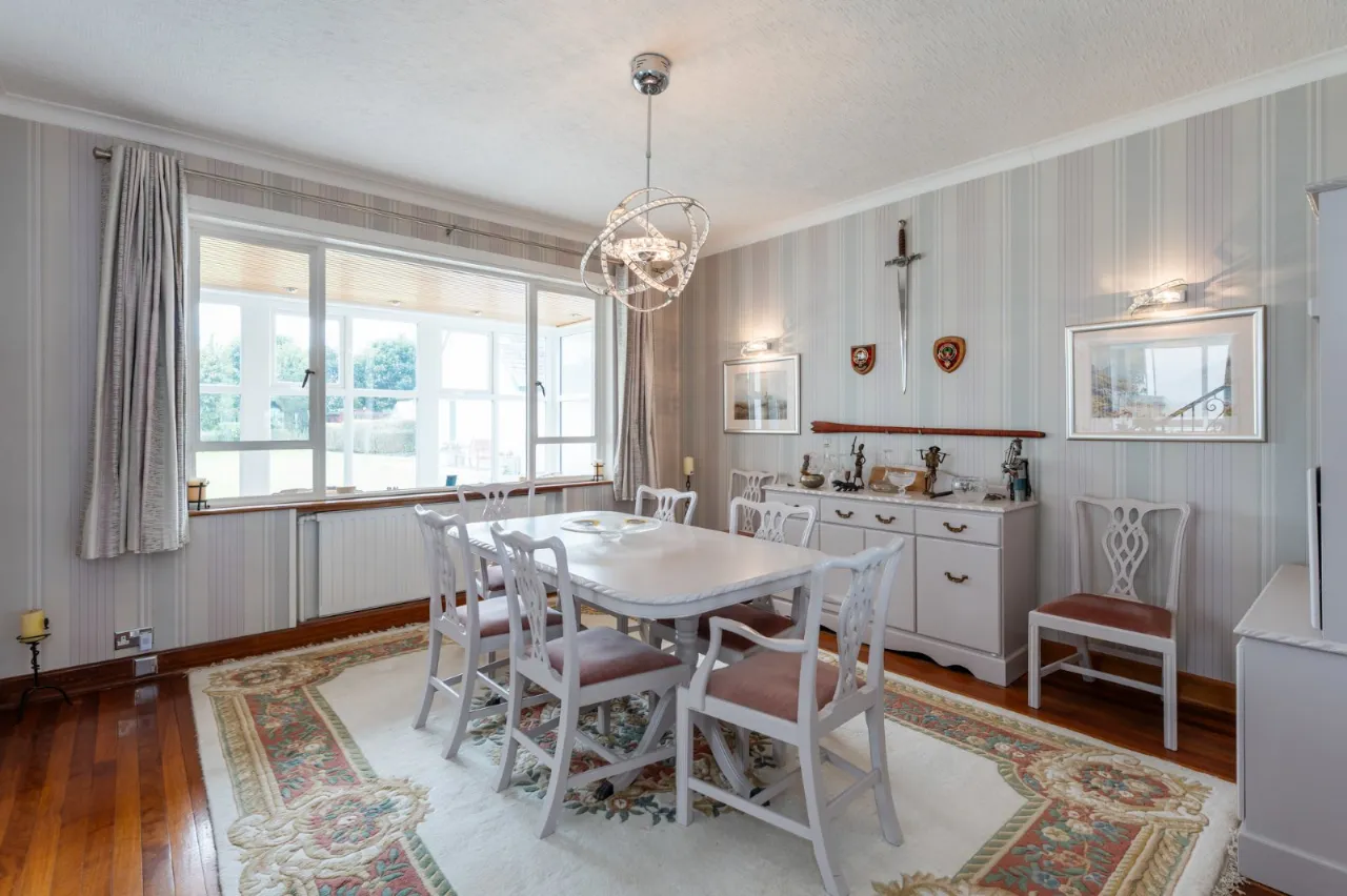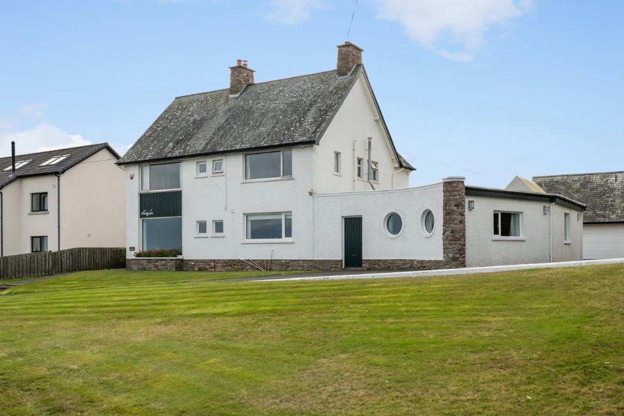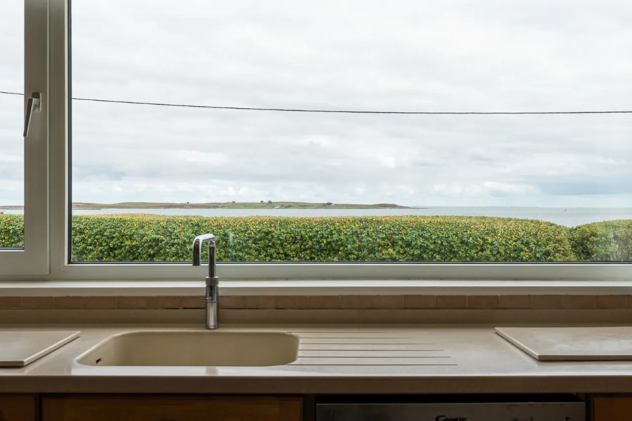 Excellent range of high and low level solid maple units, Corian work surface, inset drainer 'Quooker' hot water tap. Integrated dishwasher, integrated electric under bench oven, 4 ring ceramic hob, built in breakfast bar, glass display cabinets, ceramic tiled floor, low voltage spotlighting, space for American fridge freezer, sea views, access to annex. Stained glass hatch to kitchen.