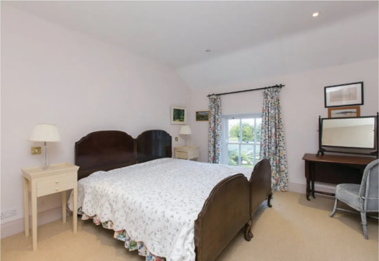 The potential self-contained apartment is approached via the library corridor and also by its own rear door entrance. Currently the kitchen is used as an office. There is also a spacious bedroom and bathroom. The bedroom gives access to two interconnecting rooms which sit over the garages. These large rooms could be put to a number of uses, including further accommodation, general amenity space or incorporated into the garages/coach houses below. Consents may be required.