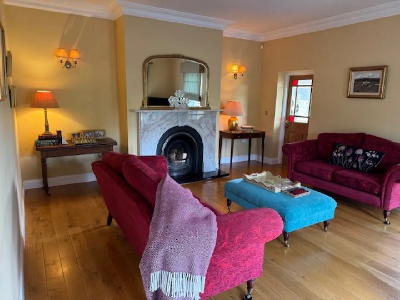 Marble Fireplace, open fire, Premium French oak flooring, Cornice ceiling