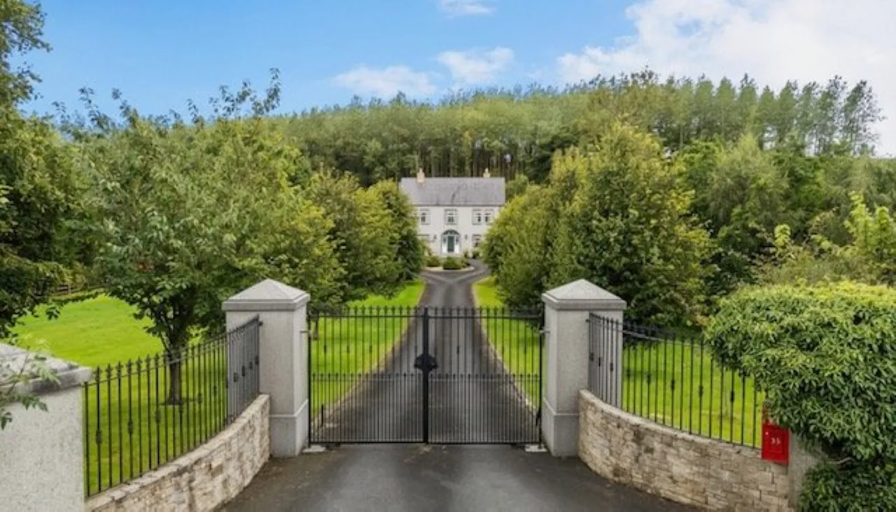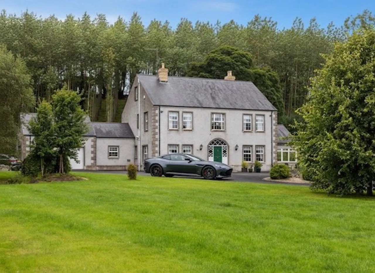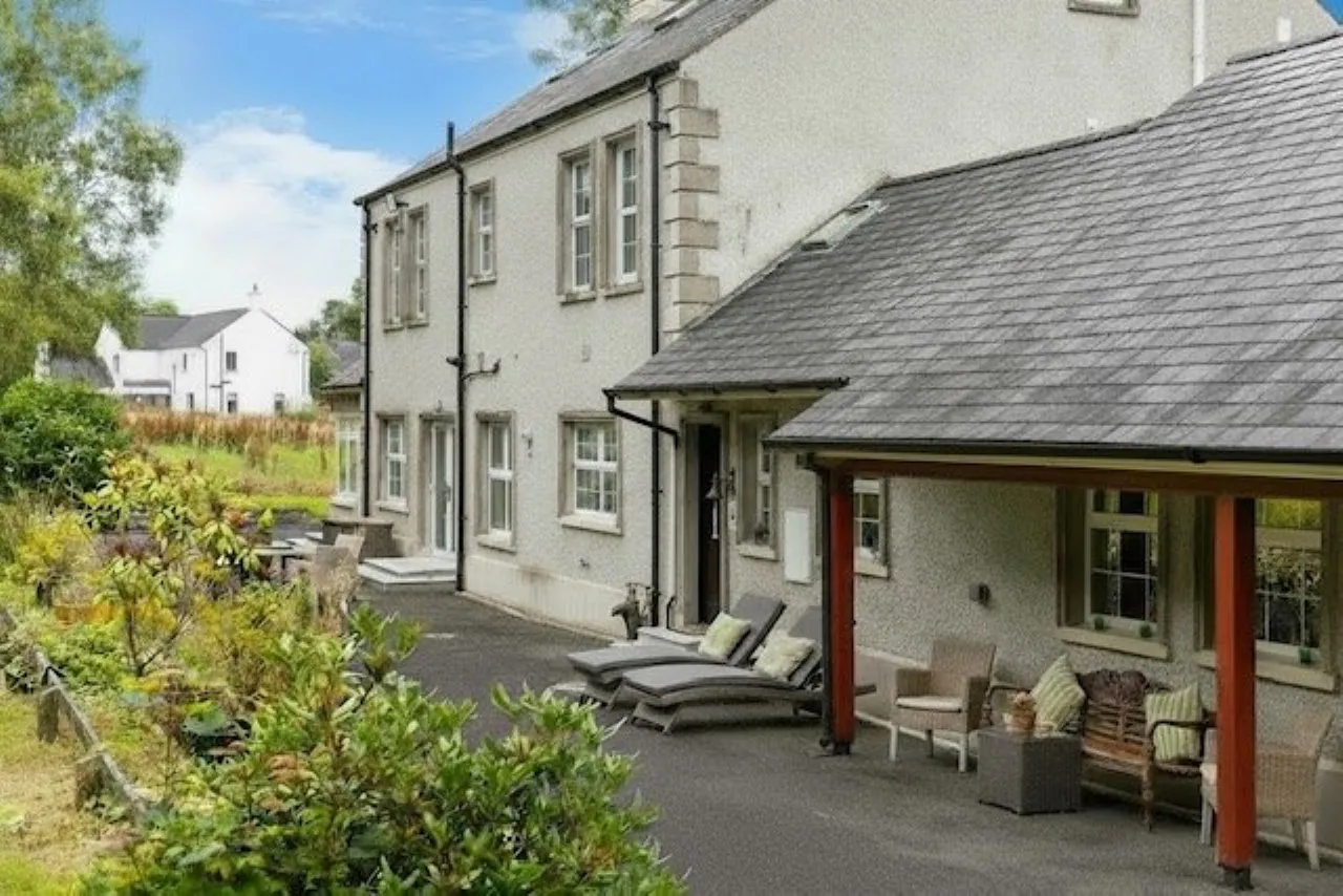 Magnificent site accessed via electric gates extending to 2.2 acres with formal lawns, patio and woodland, generous parking with turning circle for several cars, granite external steps at all external doors