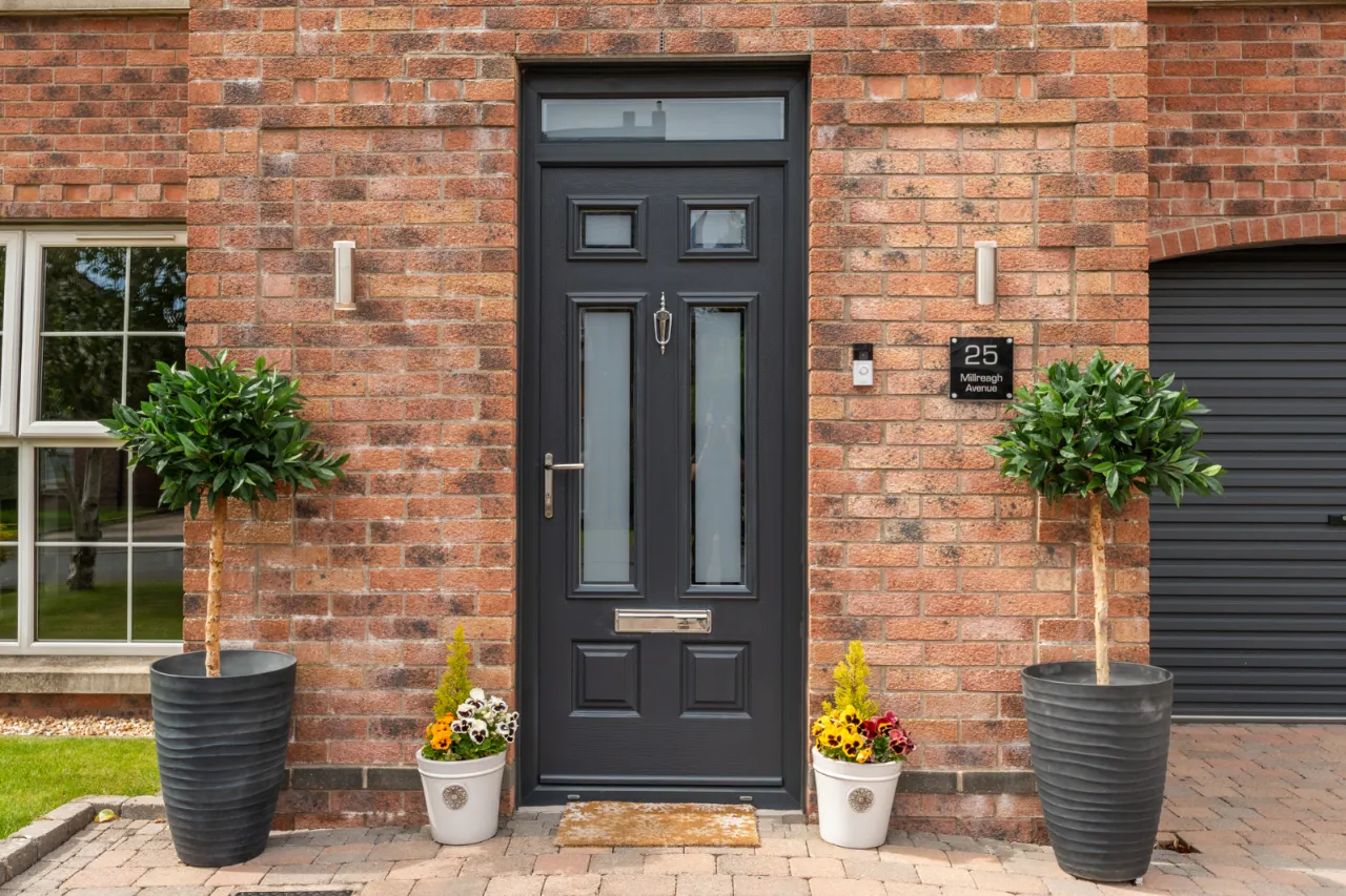 uPVC front door with glass inset and top light