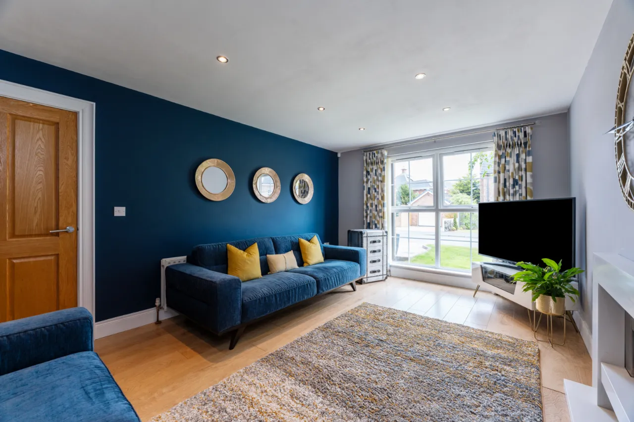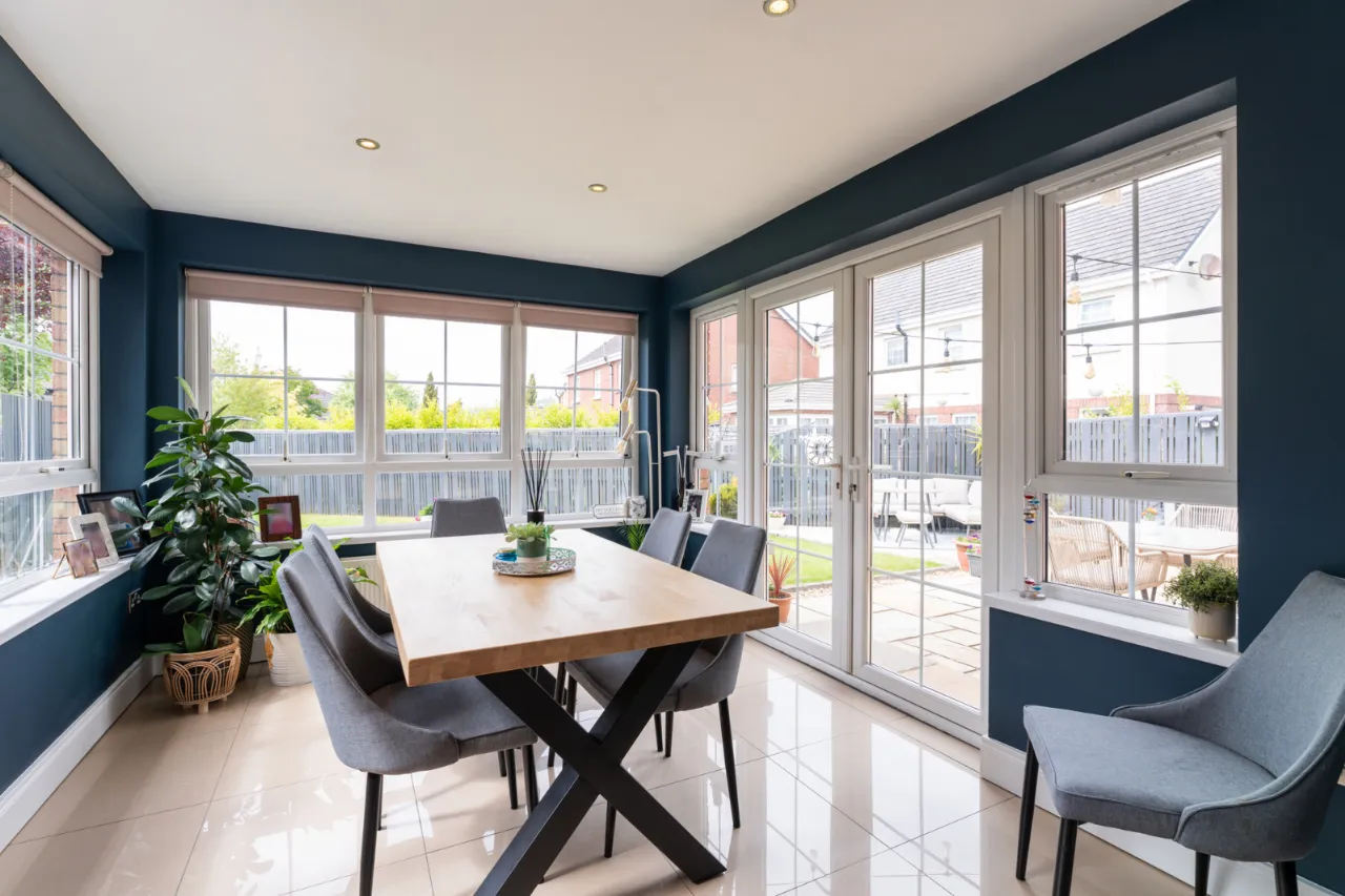 Spotlighting, tiled flooring, uPVC French doors leading through to rear gardens