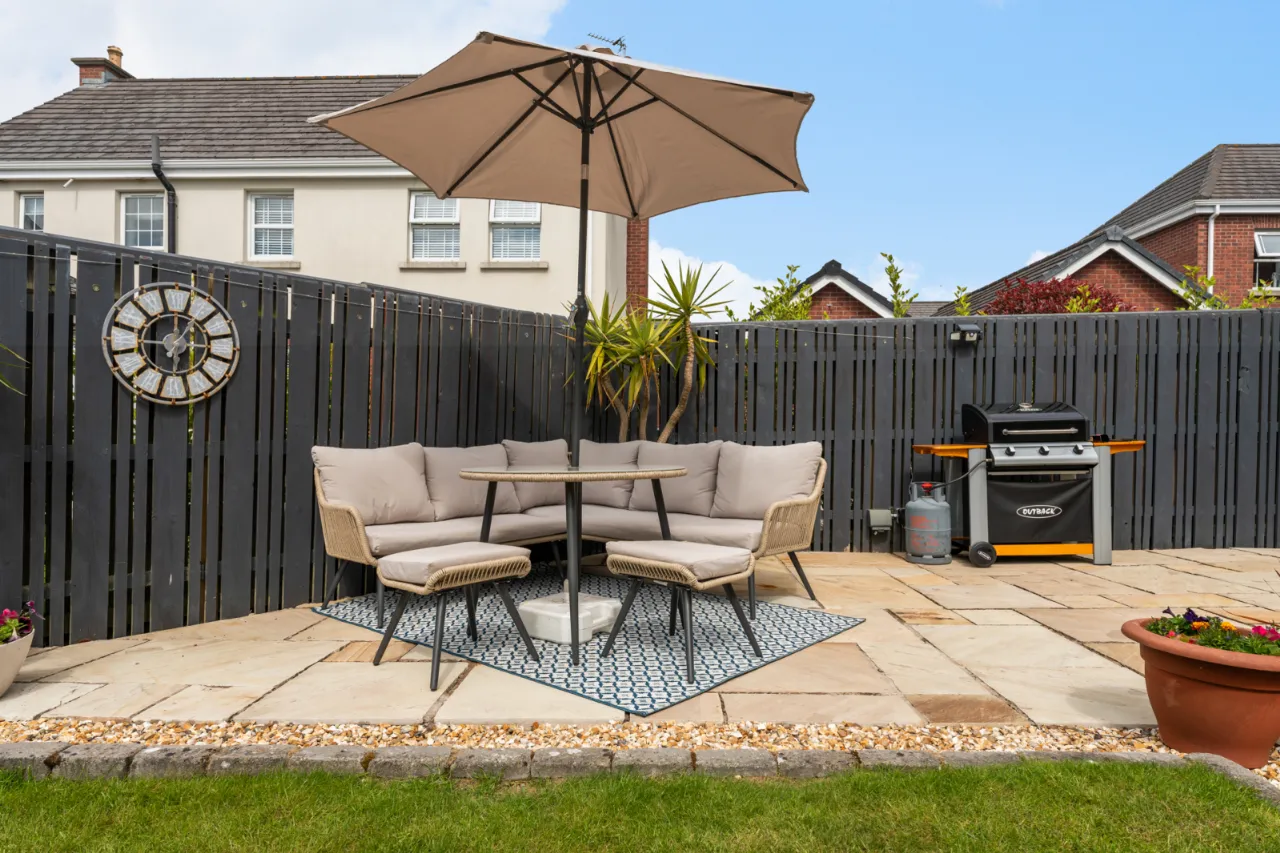 Front with garden laid in lawn, driveway, mature shrubs and planting. Rear garden laid in lawn, paved patio area ideal for outdoor entertaining, outside sockets, light and water tap