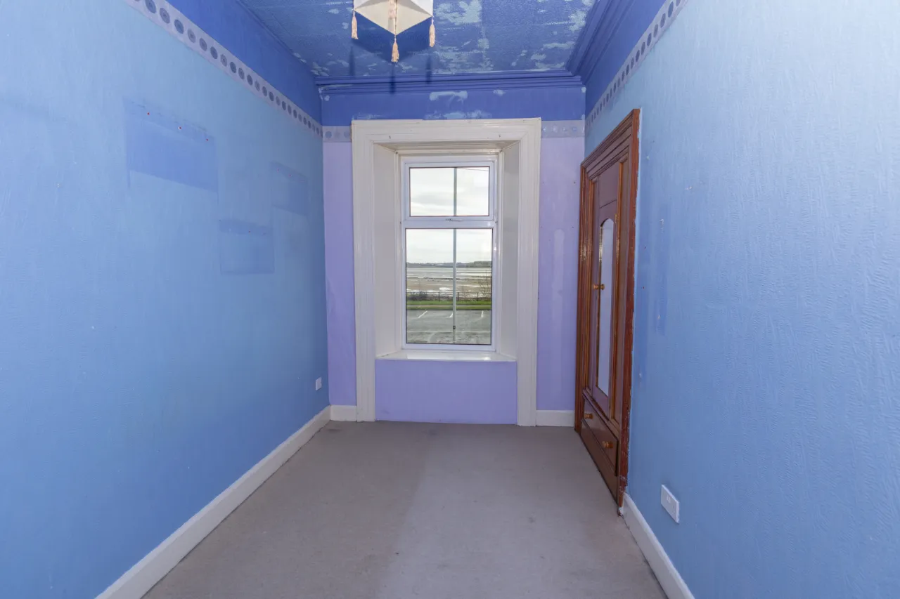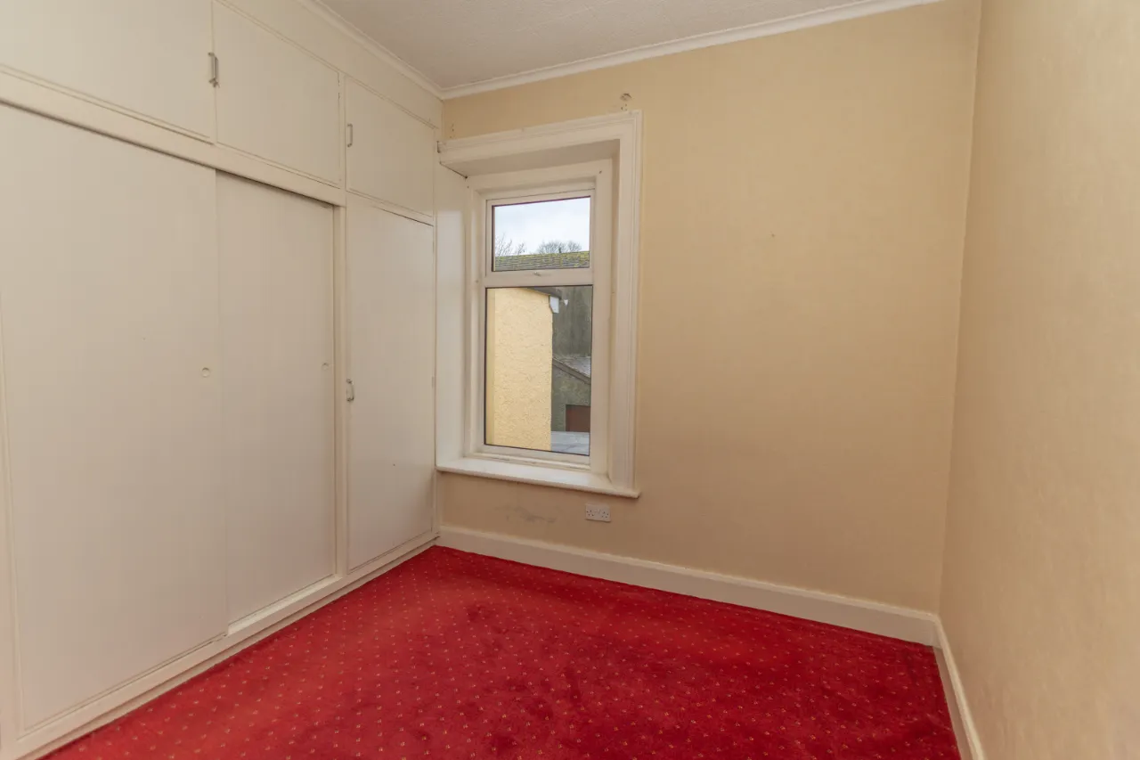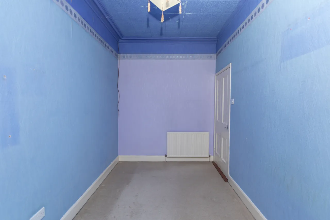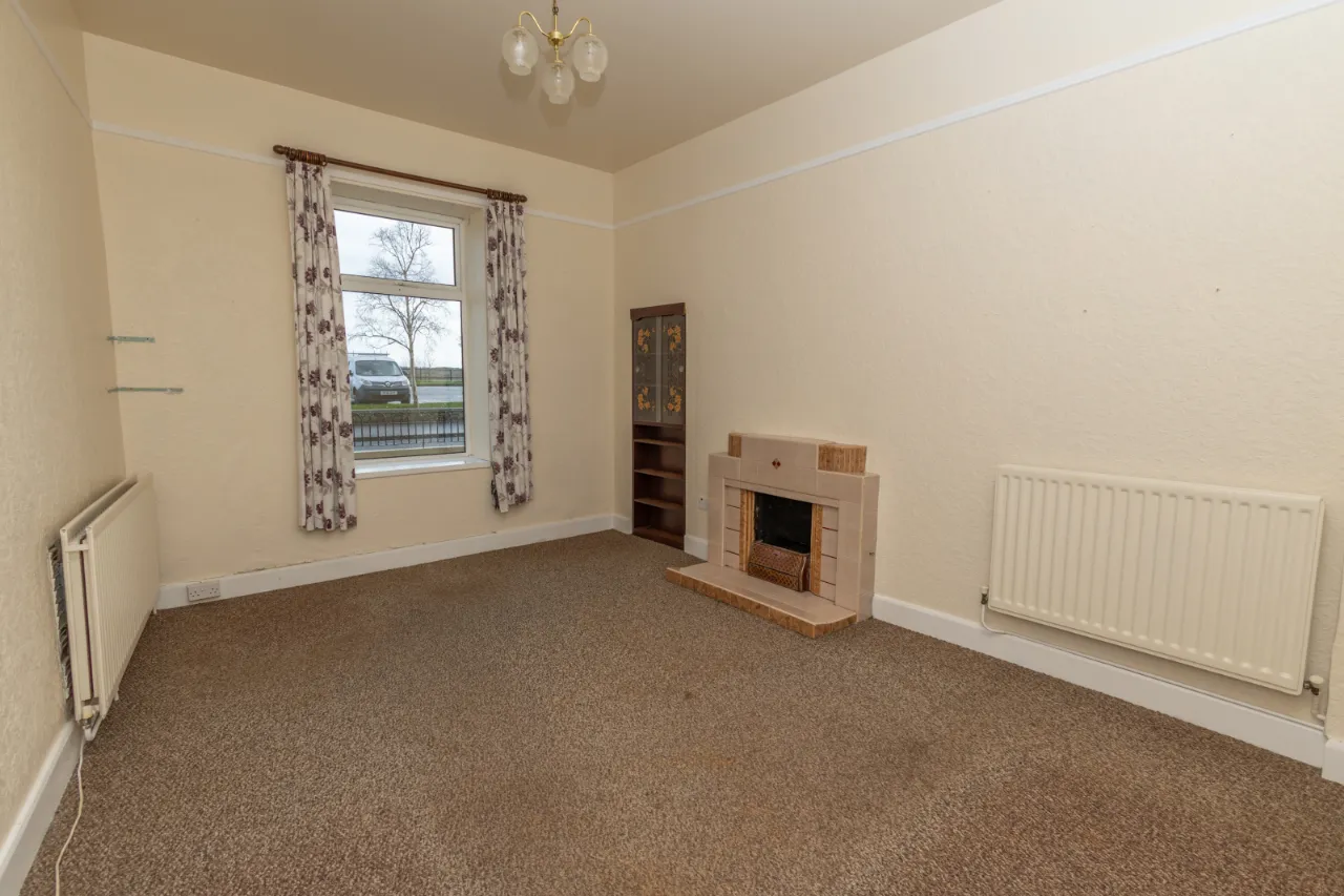 Front facing - carpeted flooring, open fire with tiled surround and mantel. 2 x double radiators. Heating conrols.