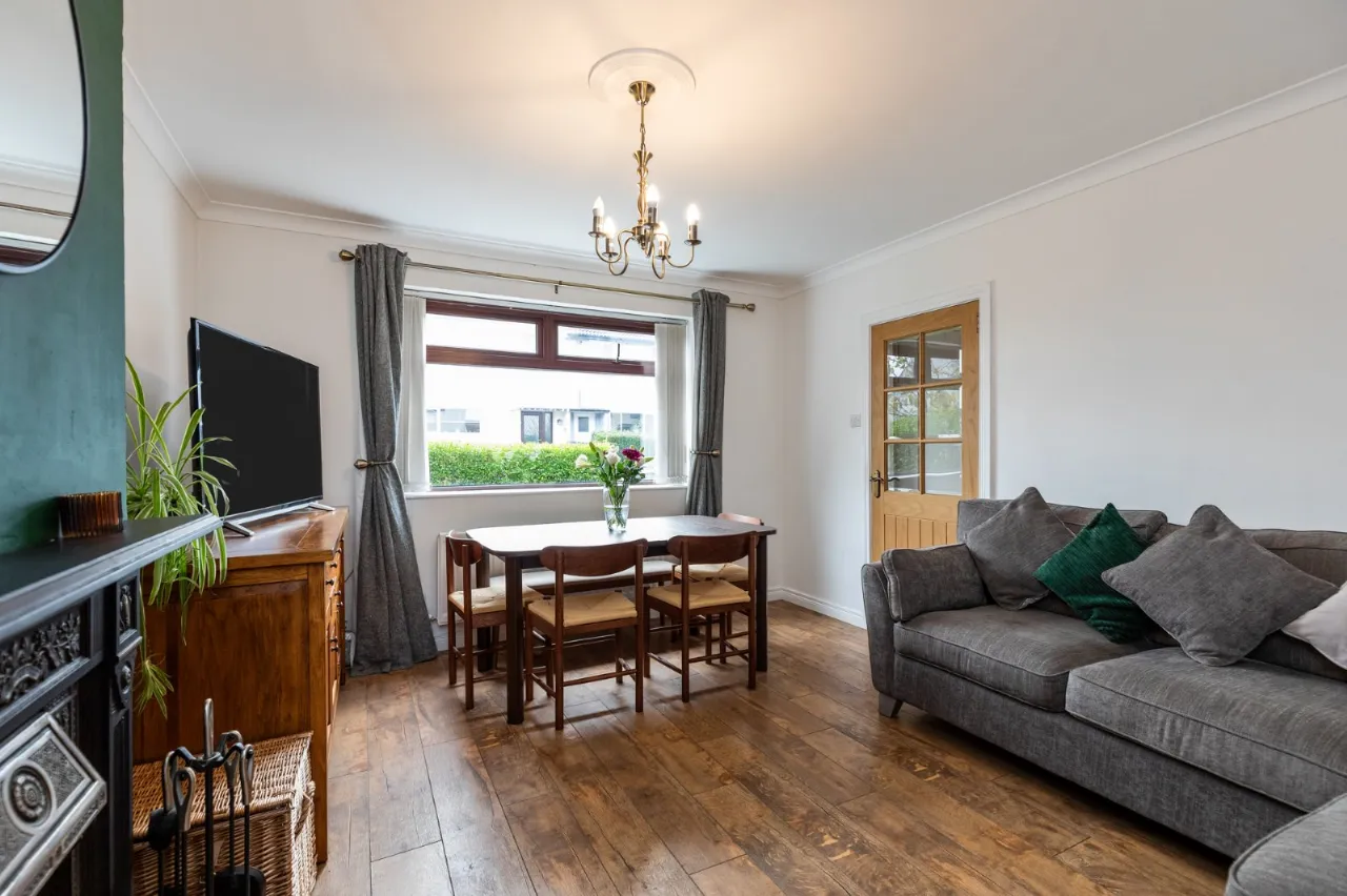 The accommodation briefly comprises a generous living room with cosy fireplace, separate kitchen with integrated appliances, a useful storage area in the rear hallway, three excellent bedrooms and modern shower room in addition to the fully tiled family bathroom. Outside are well-maintained gardens, enclosed to the rear with a sunny Westerly aspect.