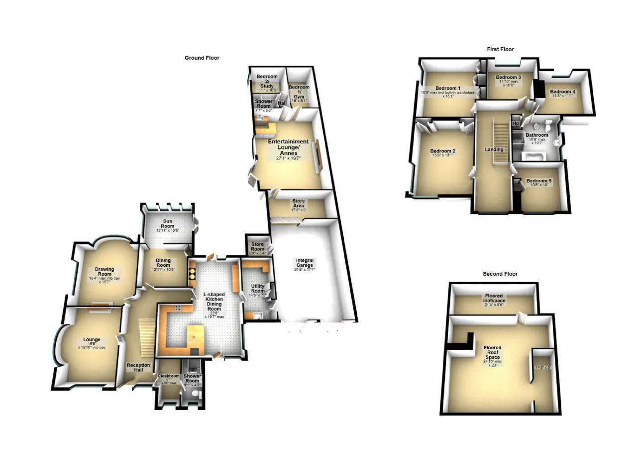 Of particular interest will be the Annex which was added to the already spacious property 25 years ago. Currently designed as a Bar/ Entertainment area it is suitable for a variety of uses. The annex is wired for kitchen appliances and can easily be converted into separate living accommodation. It will also provide excellent "teenager" or business usage and has independent access.