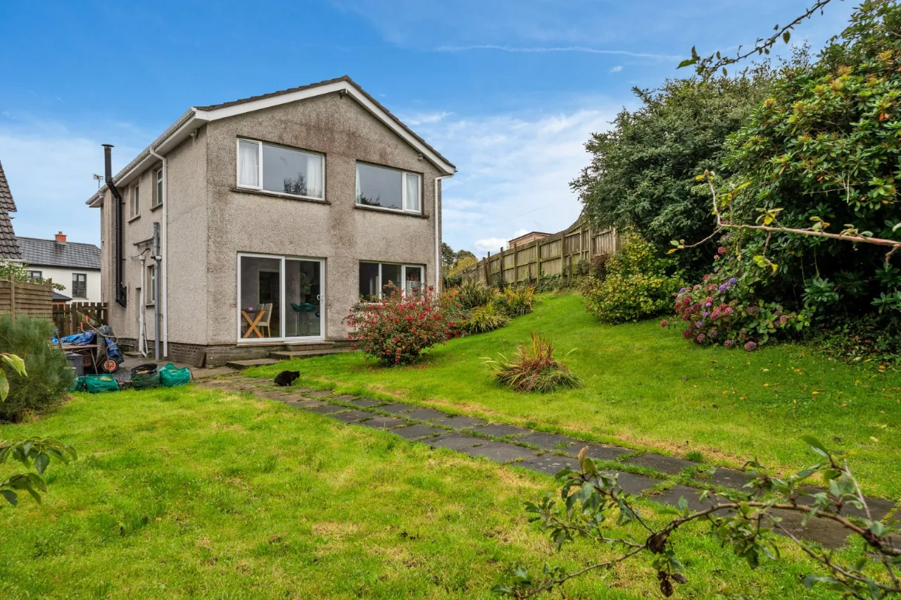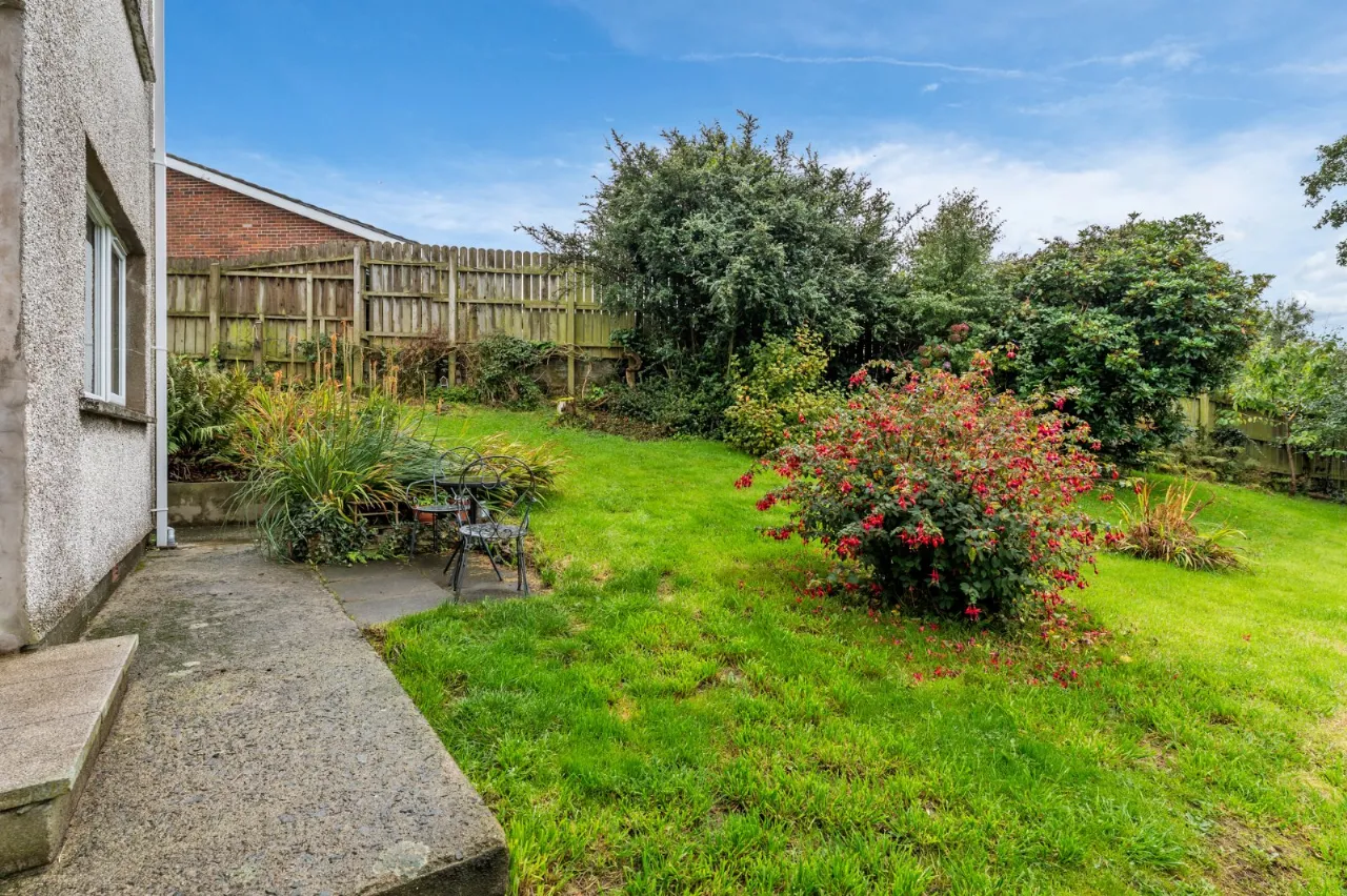 Good sized front and enclosed side and rear garden in lawns with shrubs, fruit trees and greenhouse. Driveway parking.