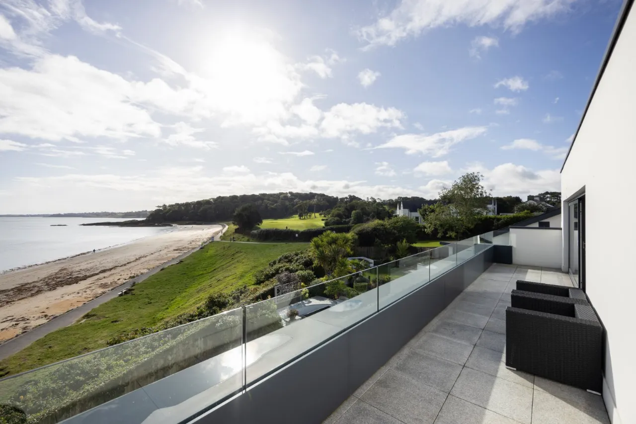 Views along Helen’s Bay Beach, North Down Coastline to the Copeland Islands and County Antrim shoreline. French door to balcony, engineered wood floor.