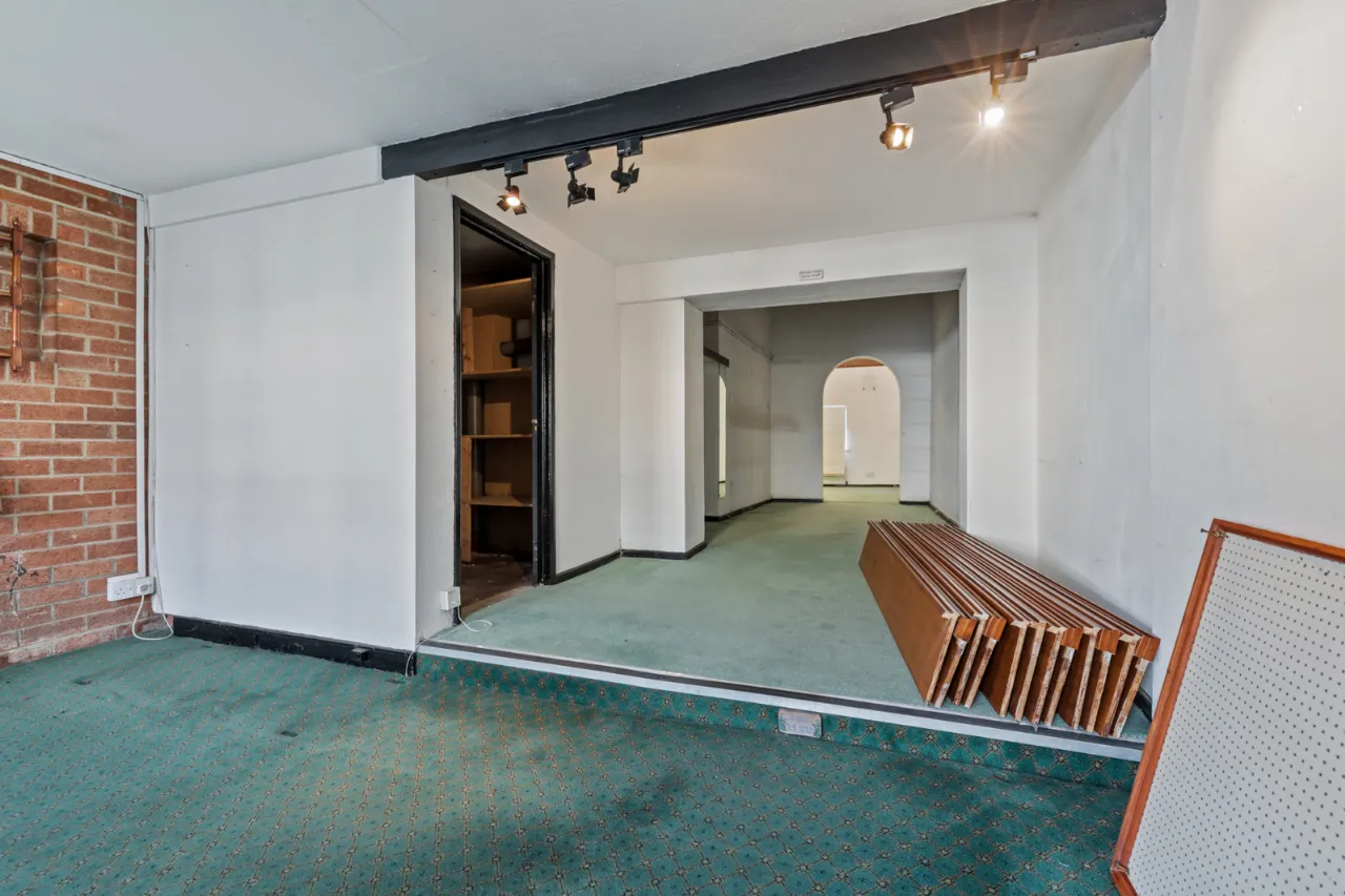 RECEPTION 1/ FORMER CRAFT SHOP: 33'7" x 14'4" (10.24m x 4.37m At widest points.)