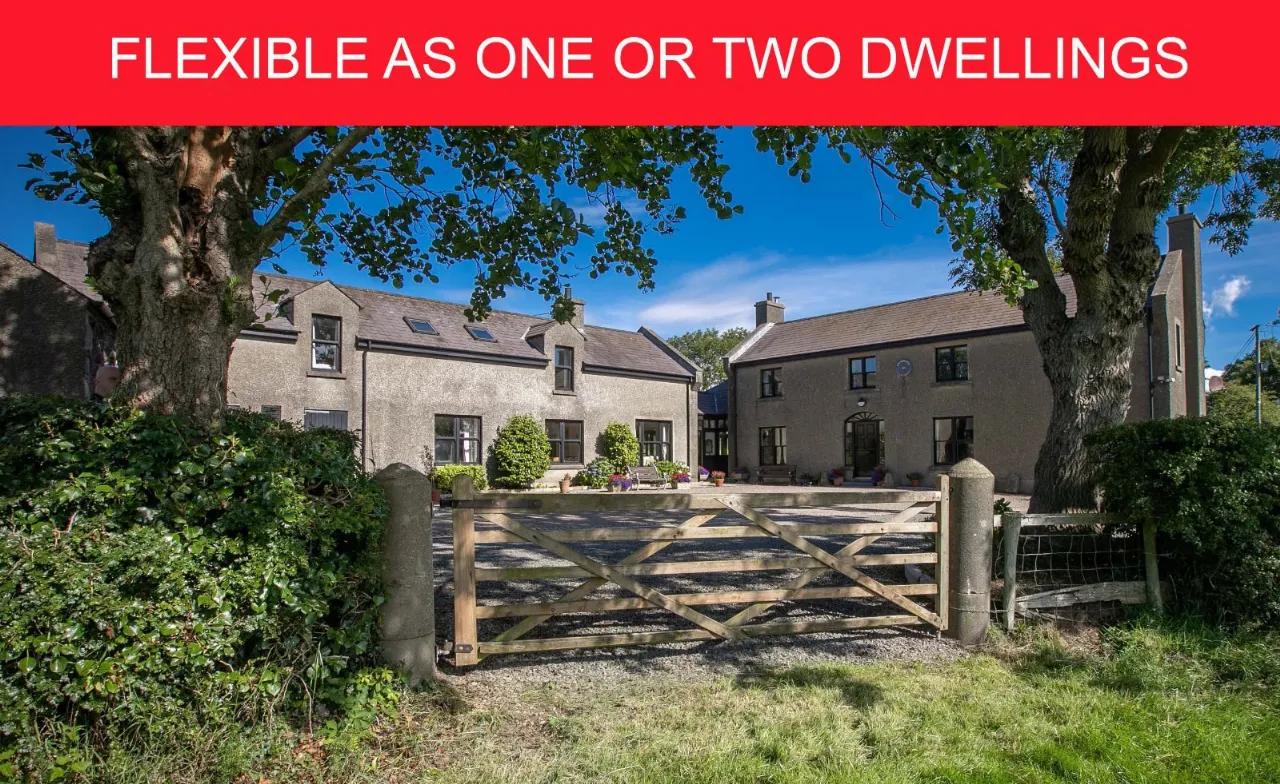 Inset Belfast enamel sink, antique style mixer taps, excellent range of solid oak high and low level cupboards, polished granite worktops, hardwood trainer, large irregular Donegal sandstone tiled floor, low voltage lighting, dark blue oil fired 2 oven Aga in tiled recess, Britannia oven and 4 ring gas hob, Ariston dishwasher. Space for dining table and chairs. Island unit with additional storage, partly tiled walls, recessed low voltage spotlighting. Double glazed door to sun lounge.