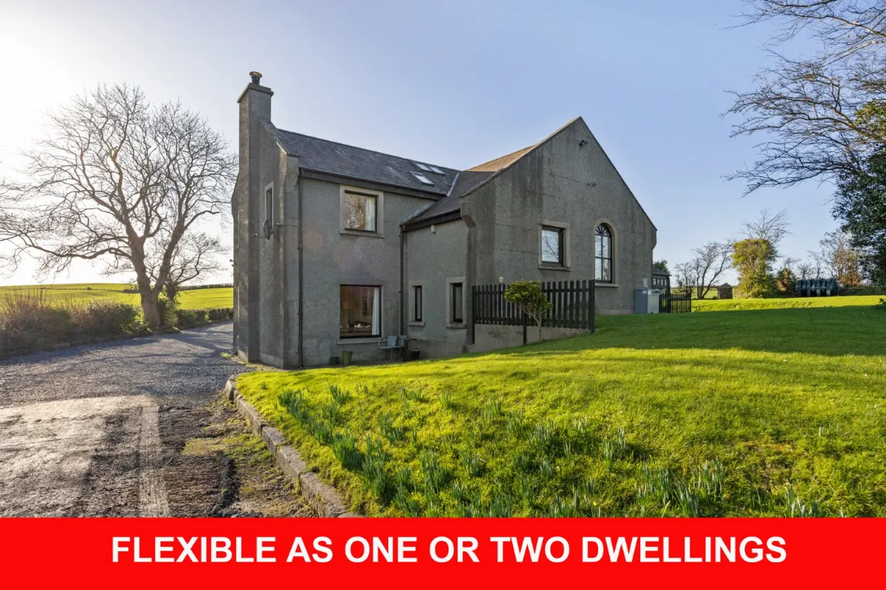 Large courtyard providing generous parking, sandstone flagged paths, water taps, uPVC oil tank and new oil fired boiler. Store with plumbing for washing machine.