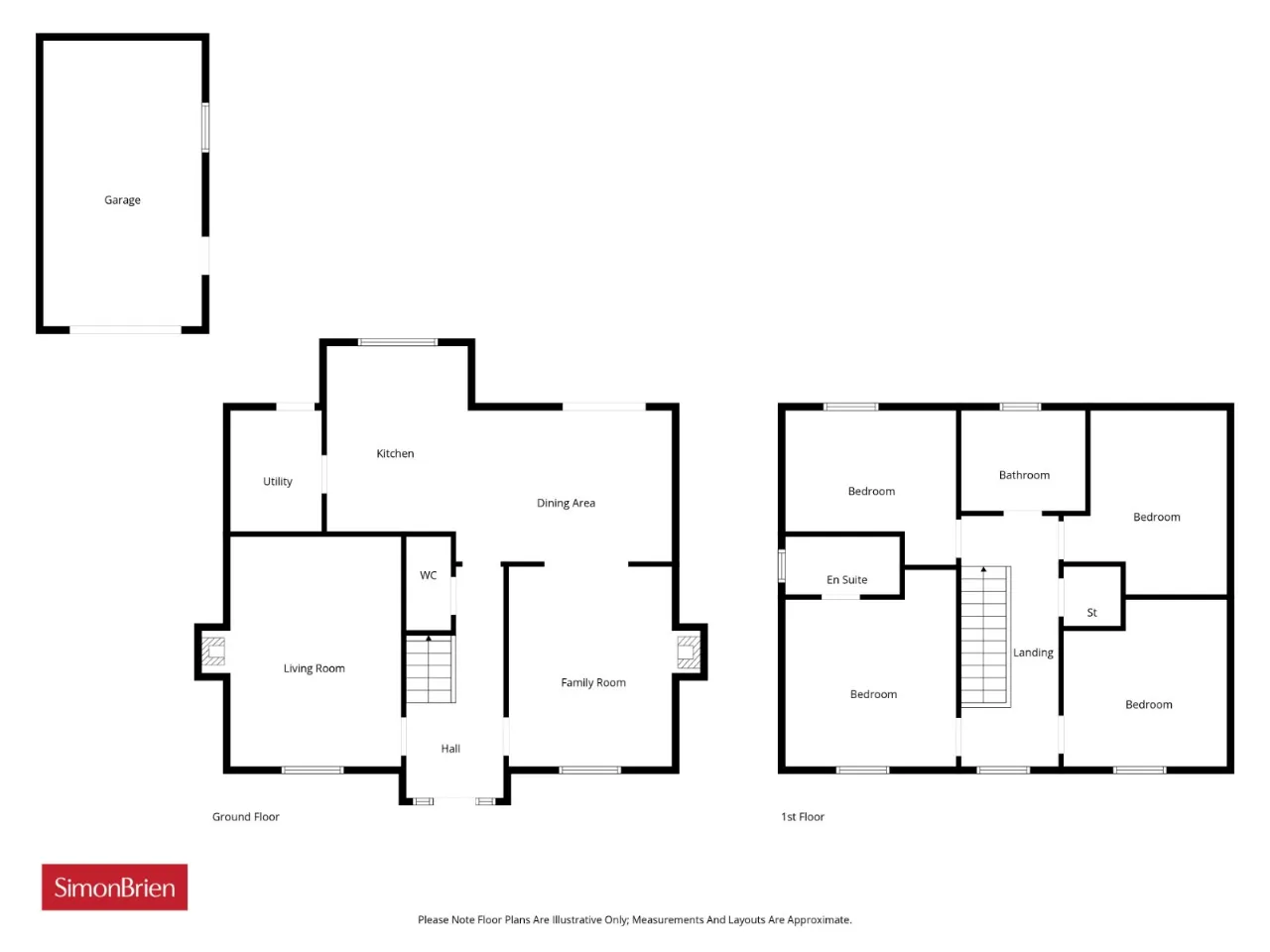 Front garden in lawn, tarmac driveway to the side for several vehicles, estate railing to the front. Spacious enclosed rear garden in lawn with paved sitting area