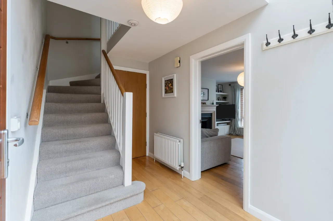 Solid wood floor, under stairs storage cupboard.