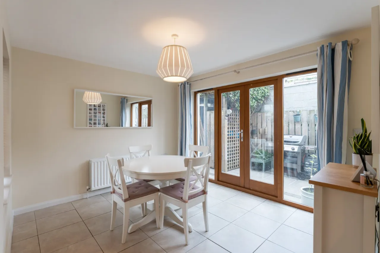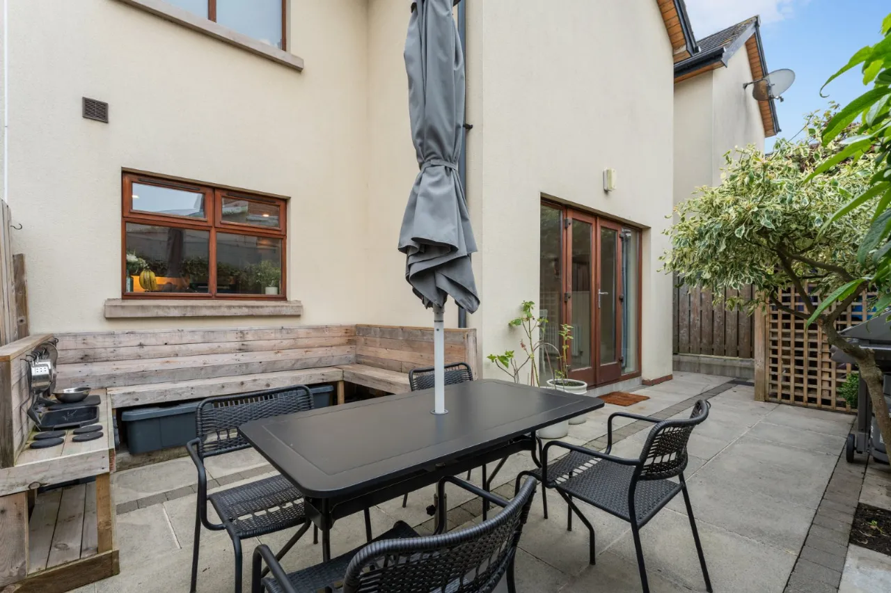 Enclosed rear yard in paving. Brick pavior driveway parking to front for 2 cars.