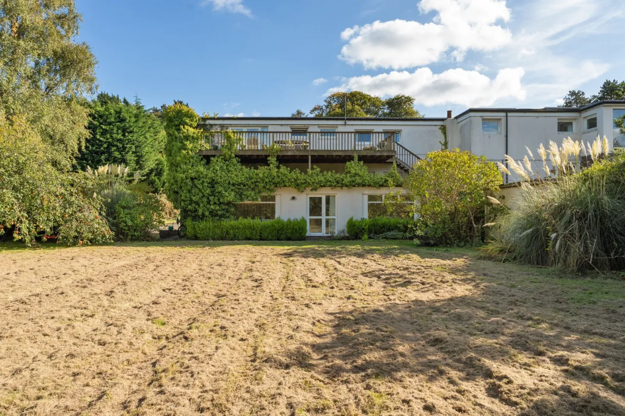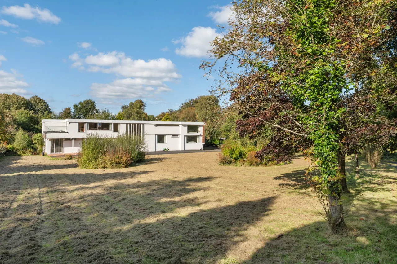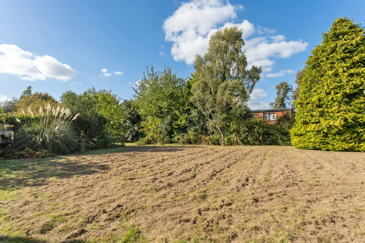 Extensive site of just under 1.5 acre laid in lawns bordered by mature hedging and trees, paved patio area, sweeping tarmac driveway.
