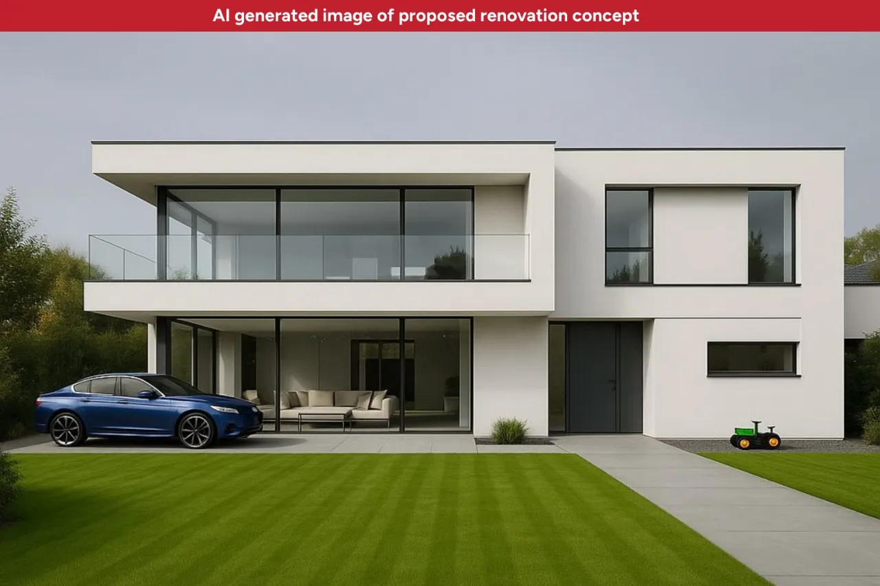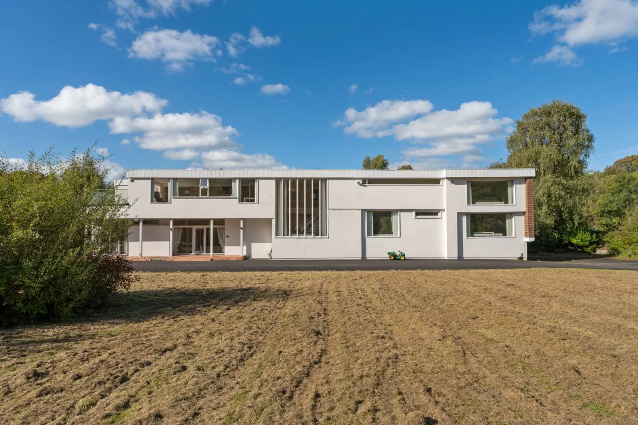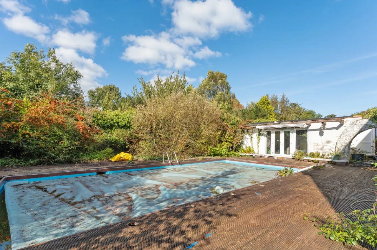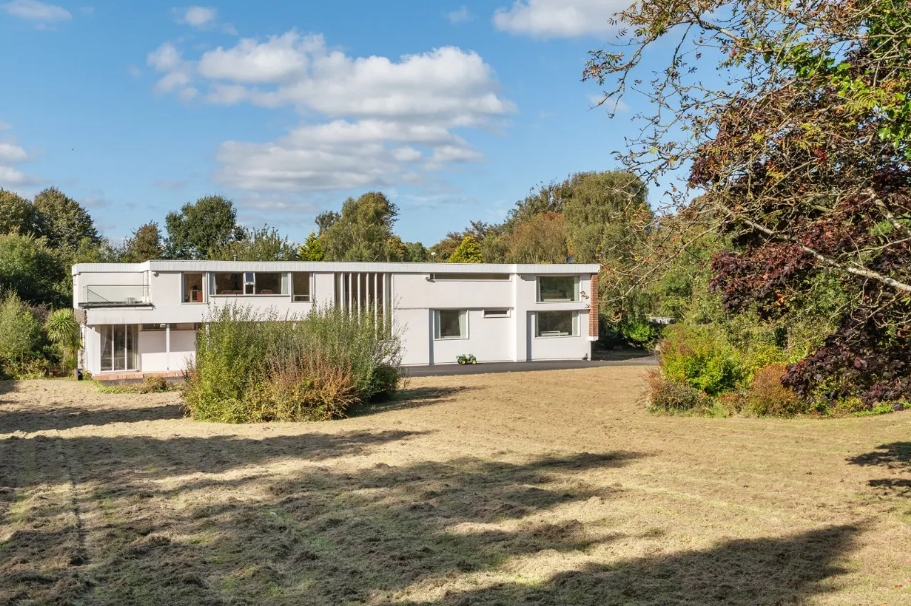 Extensive site of just under 1.5 acre laid in lawns bordered by mature hedging and trees, paved patio area, sweeping tarmac driveway.