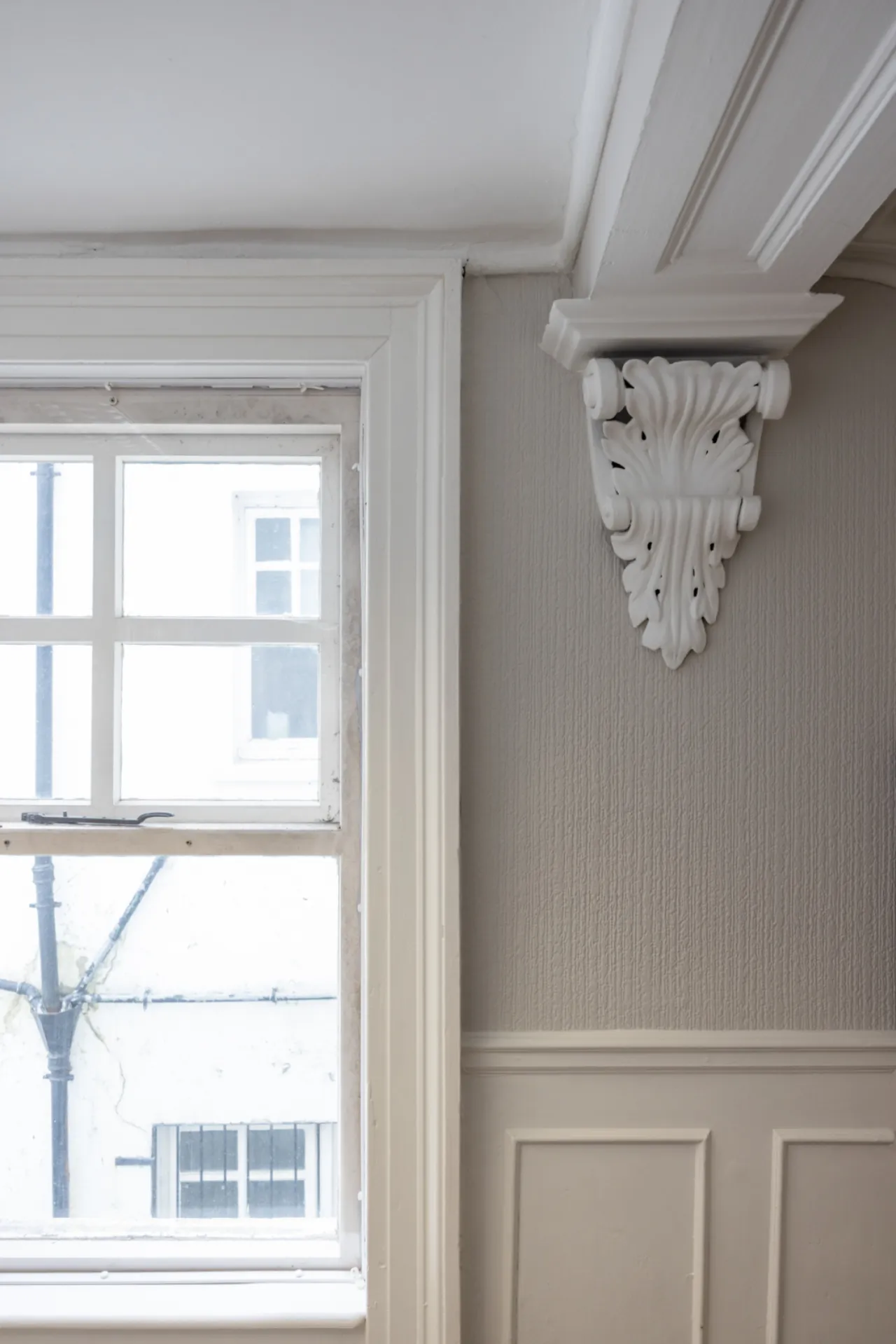 Picture rail, corniced ceiling, ceiling rose, sea glimpses, archway to: