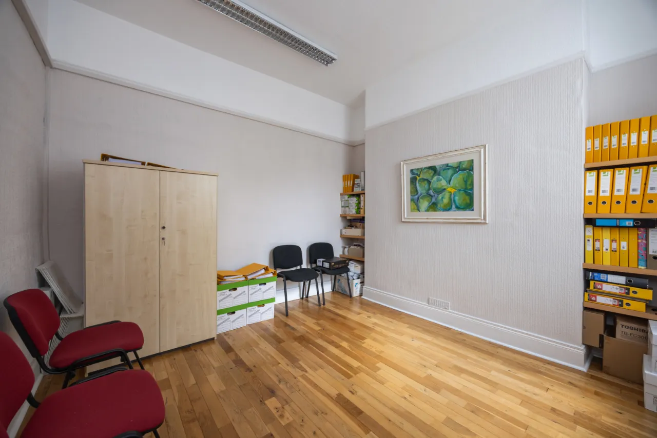 Solid wood flooring, picture rail, corniced ceiling, ceiling rose.