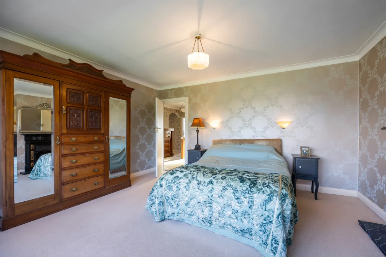 Corniced ceiling, outlook to front, built in wardrobe, cast iron fireplace.