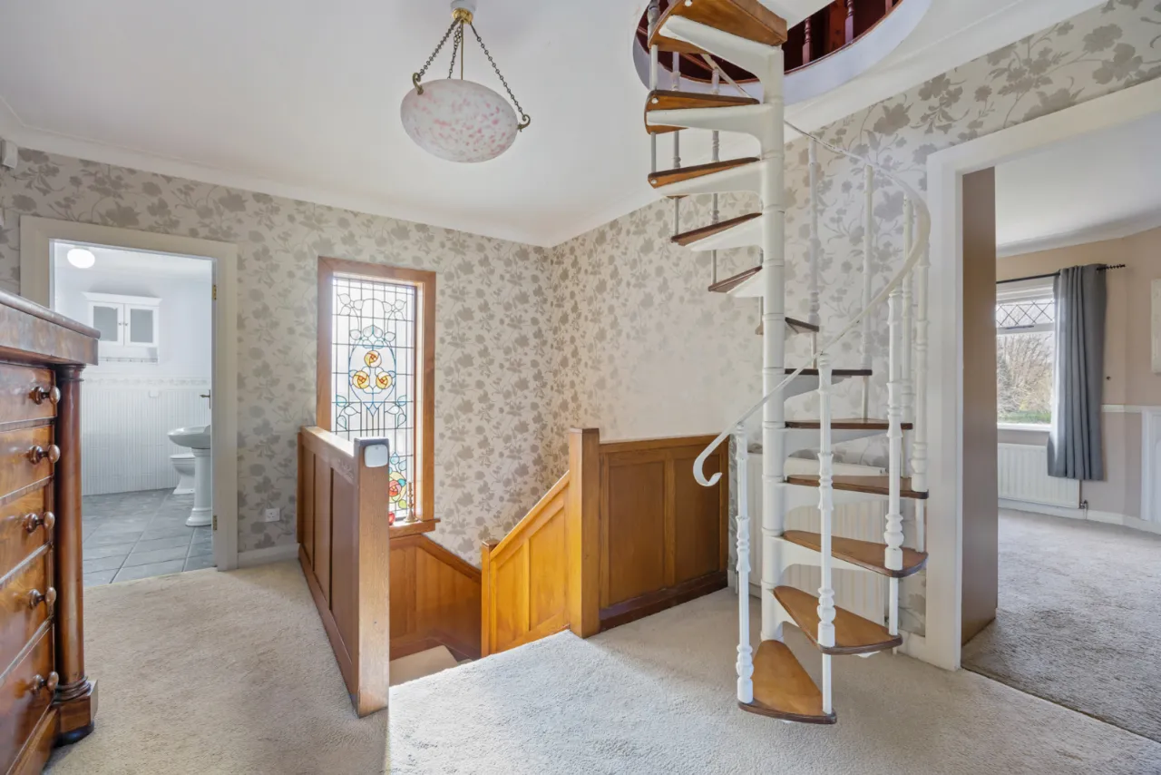 Access to Roofspace/Attic Room via spiral staircase, corniced ceiling.