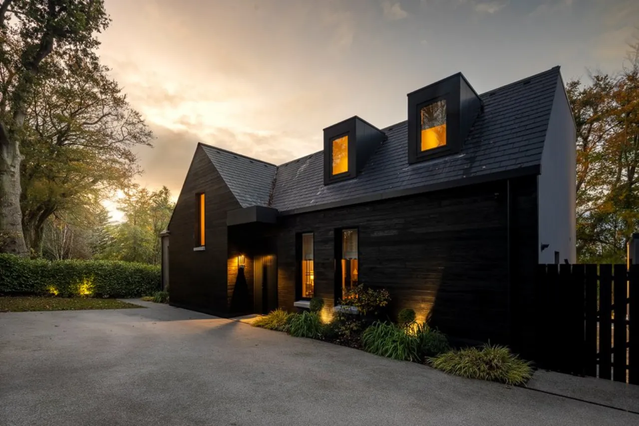 Striking floor to ceiling Crittal effect walls with sliding door to main open plan living space. Bespoke staircase with feature lighting. Wood effect tiled floor. Recessed lighting. Feature cove lighting. Large understairs storage area with communications hub for Lutron lighting system, underfloor heating, alarm and cctv.