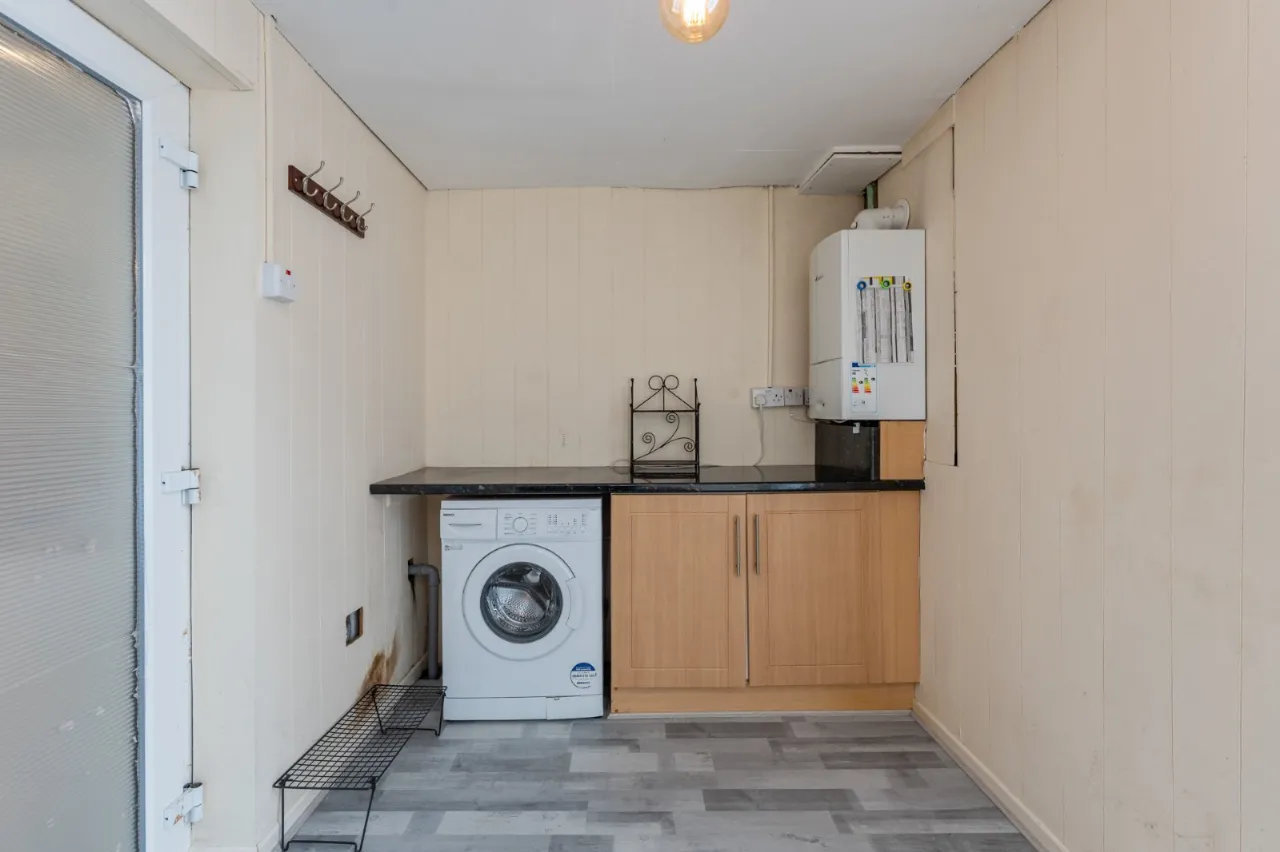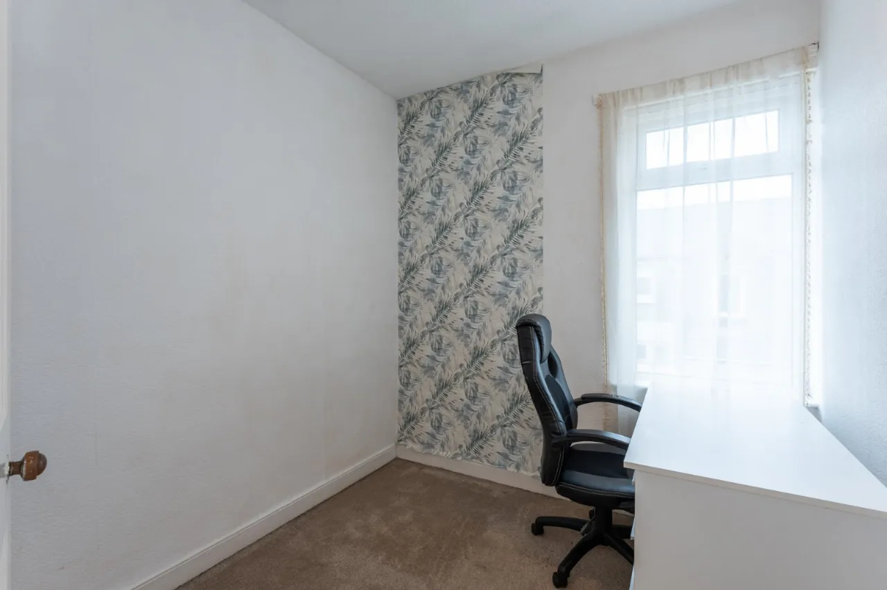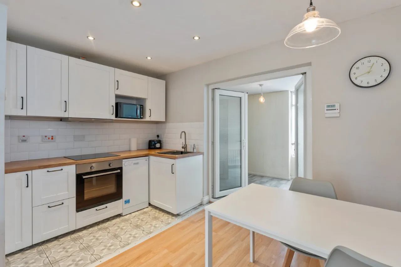 This mid-terrace home features an open-plan kitchen, dining, and living area, two bedrooms, and bathroom with white suite. Additional benefits include gas heating, uPVC double glazing and enclosed rear yard.