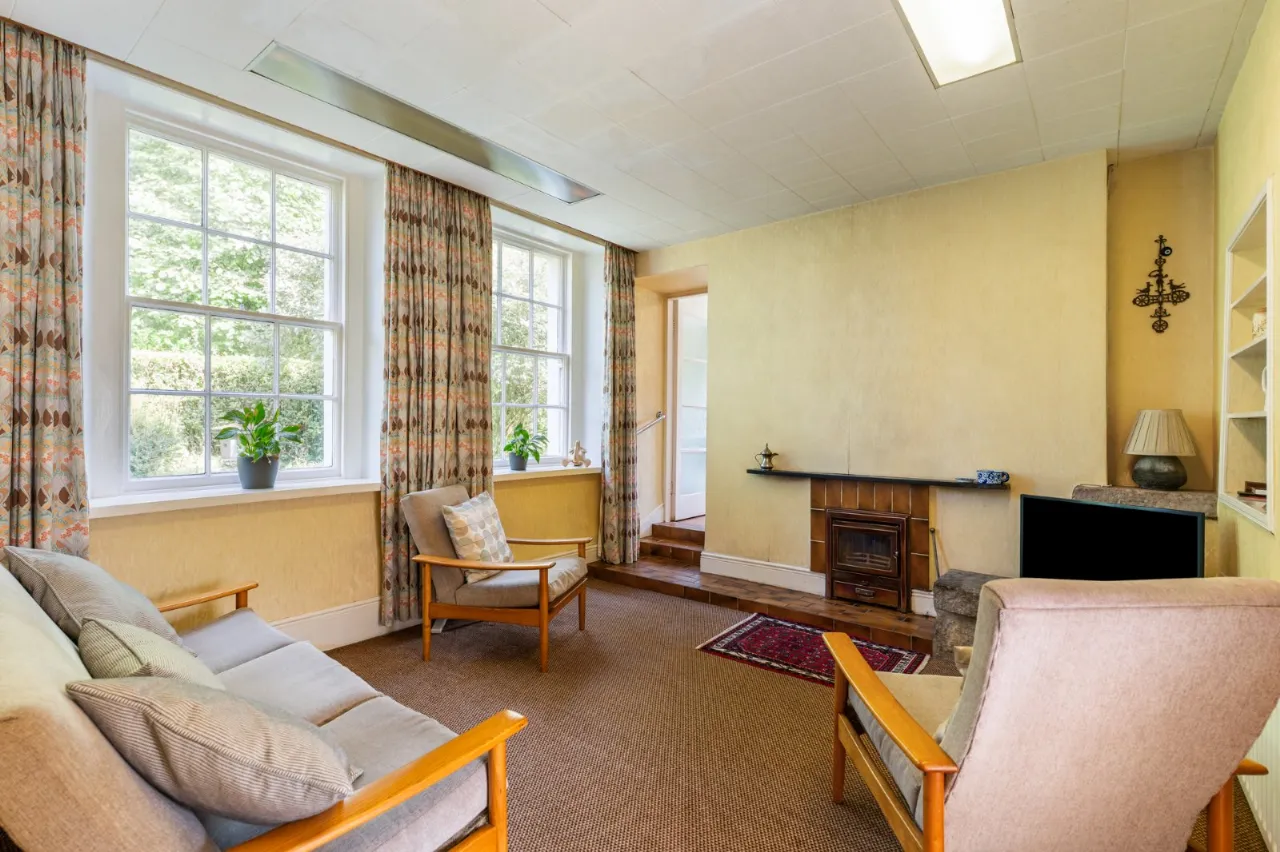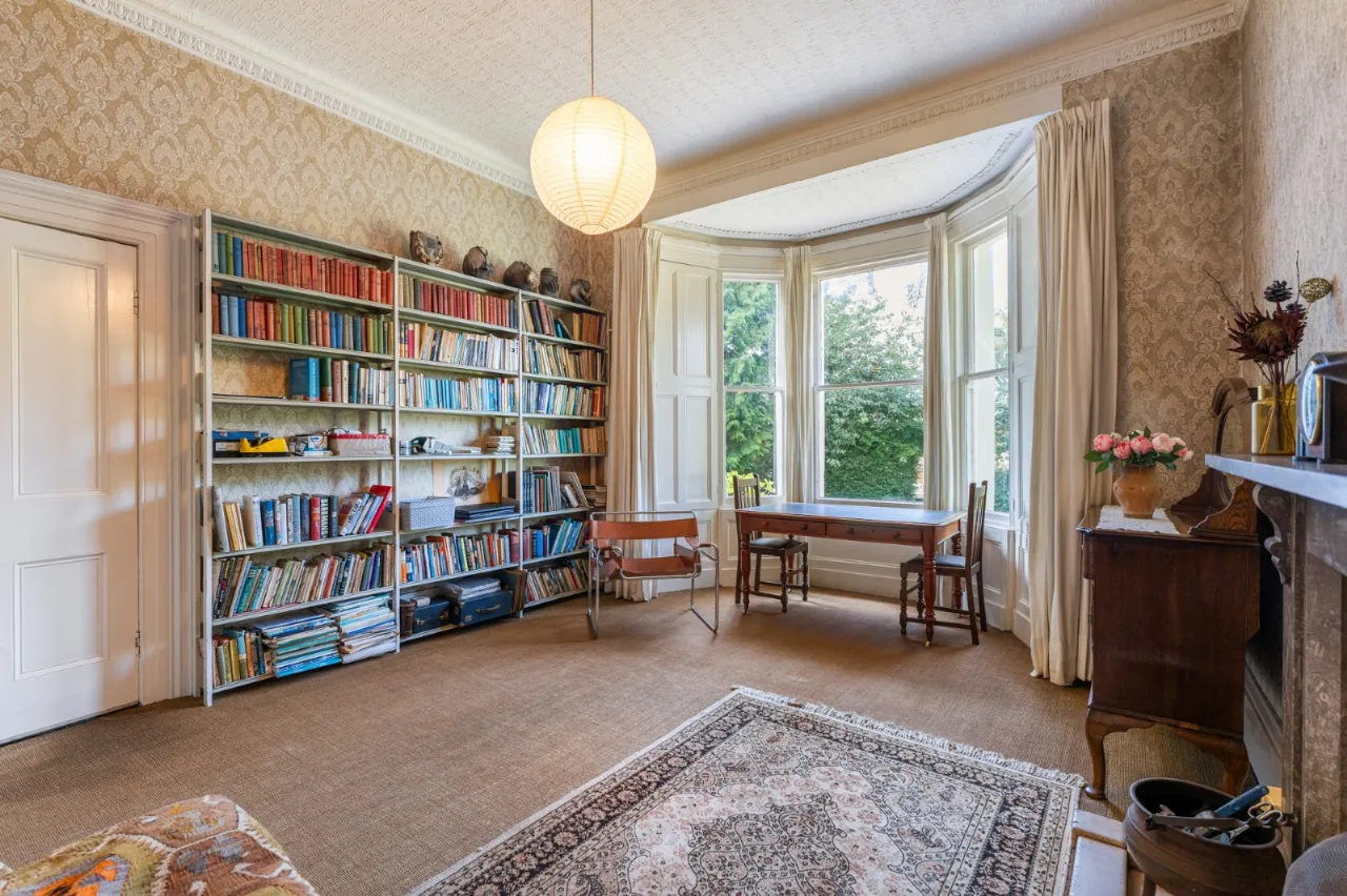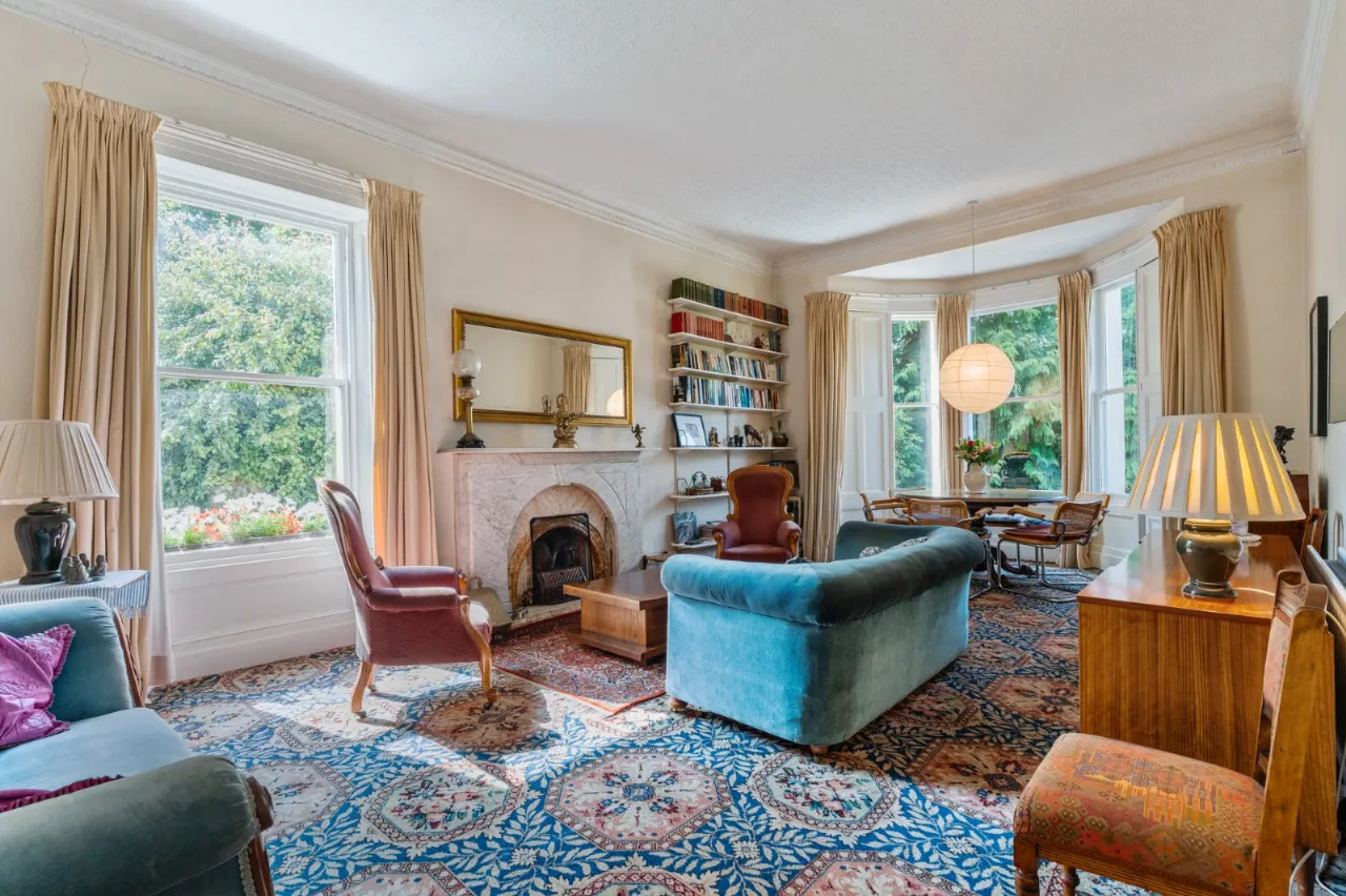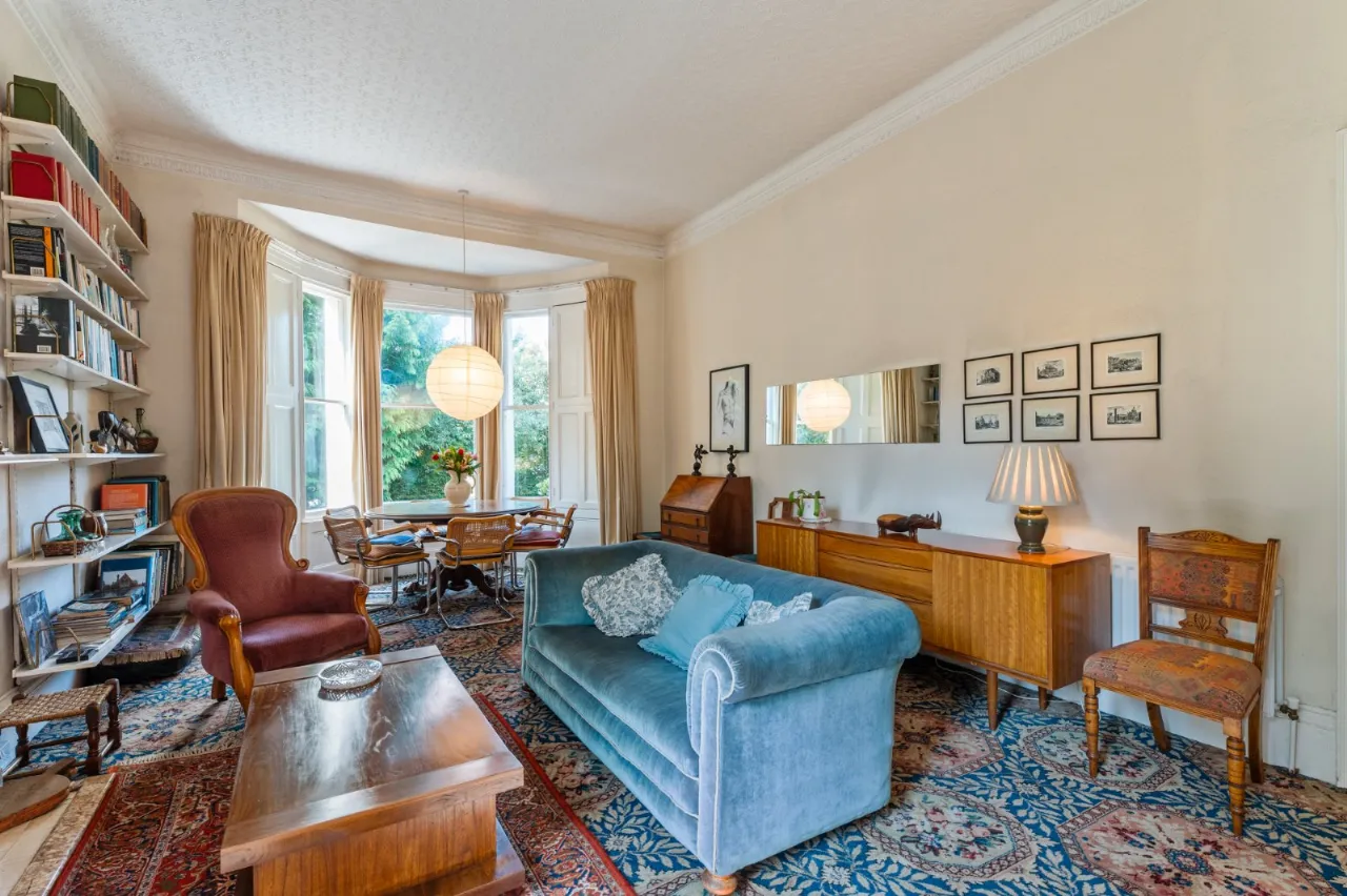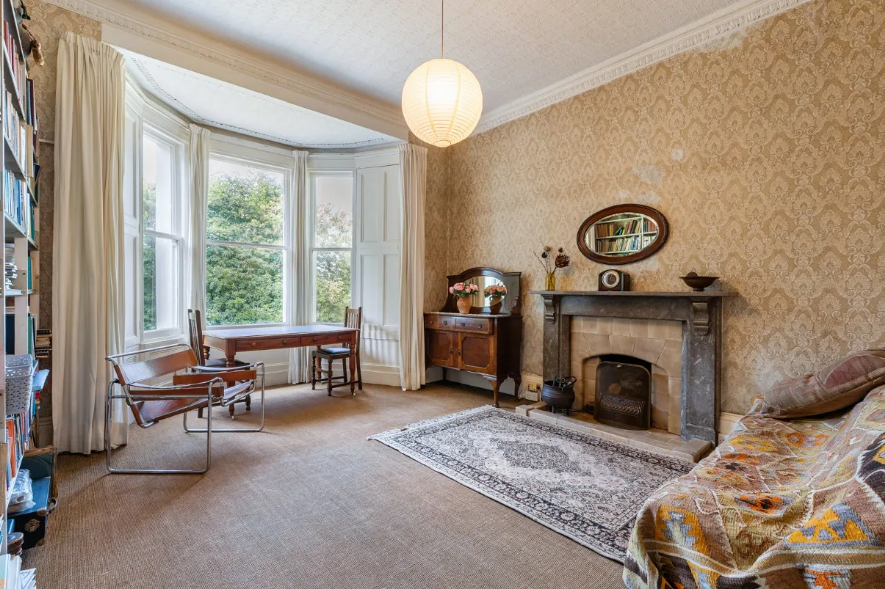 Egg and Dart corniced ceiling, marble fireplace, open fire, dual aspect windows