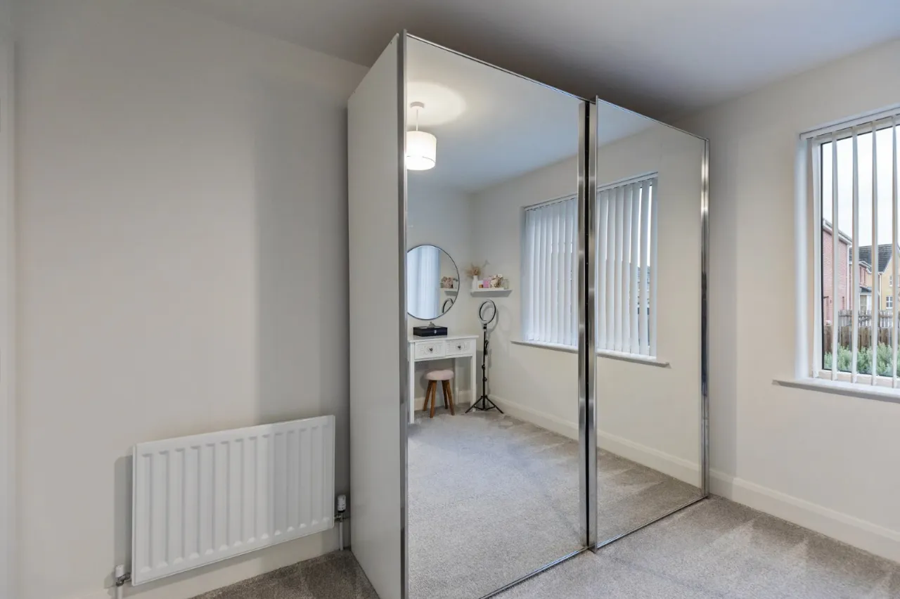 Composite entrance door. Built in cupboard with light. Understairs storage cupboard.