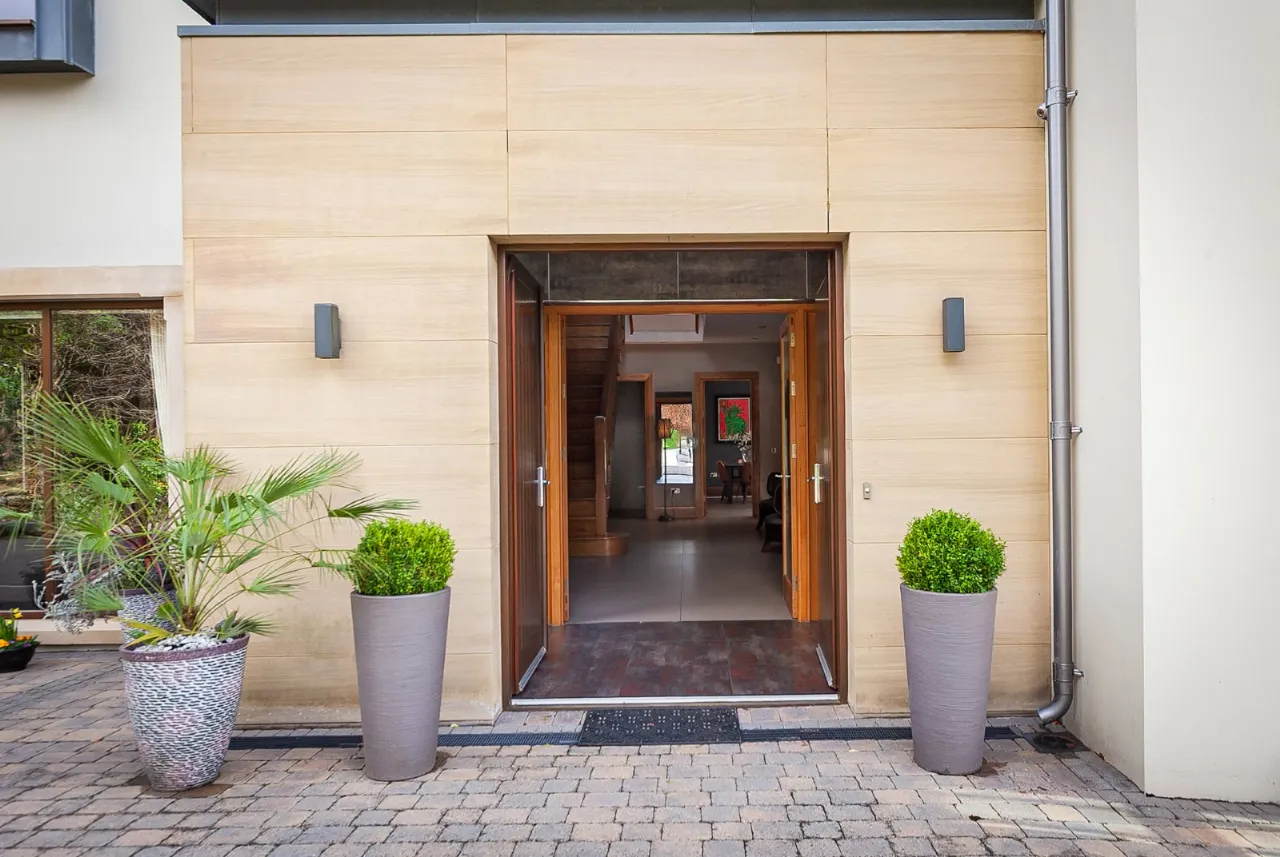 HARDWOOD DOUBLE DOORS TO ENTRANCE PORCH: