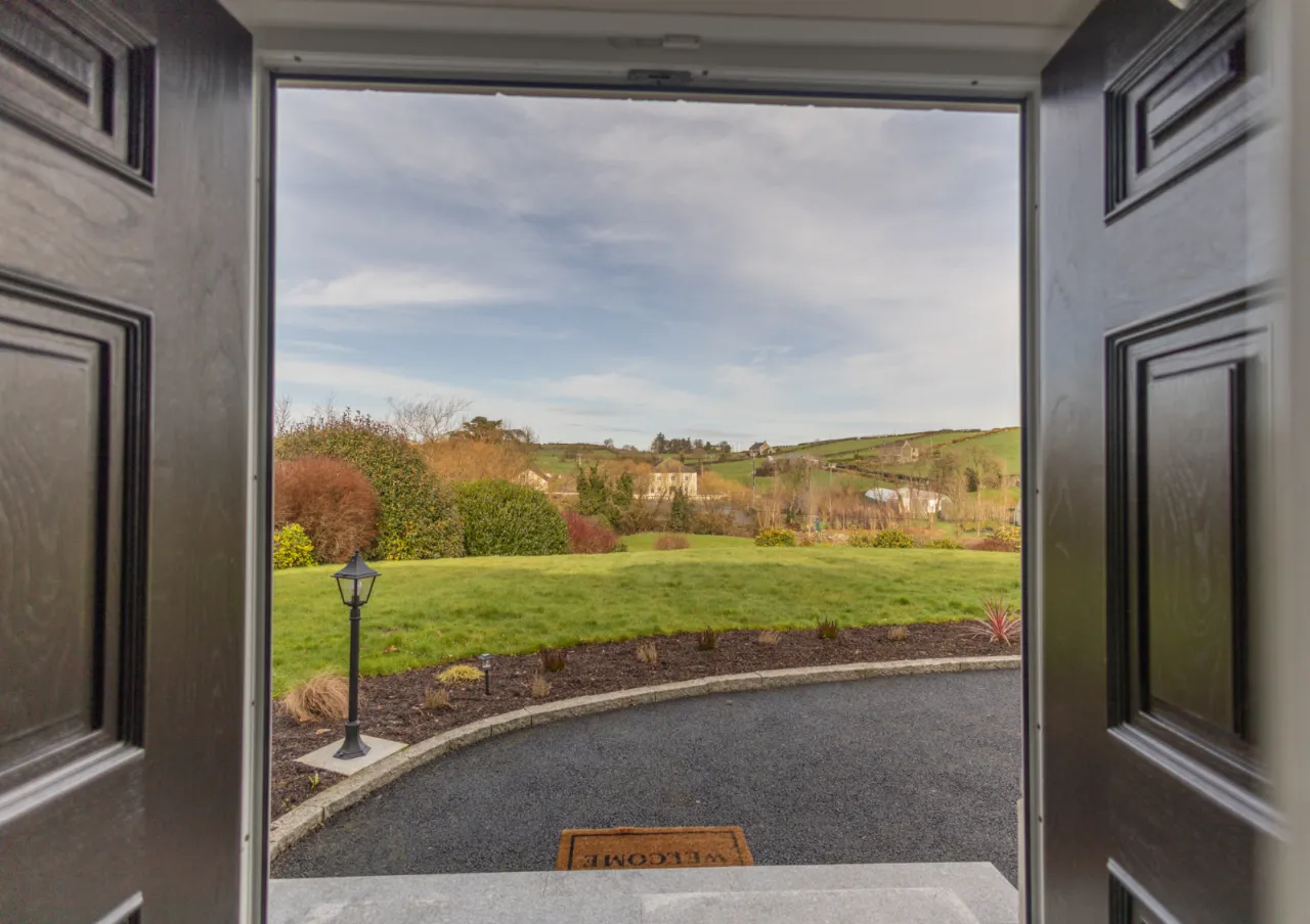Granite door step, PVC facia, electric security gate, tarmac drive way, block built garage, electric shutter door, alarmed.