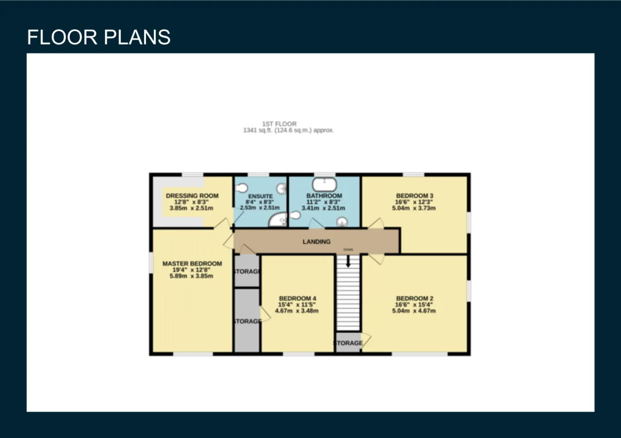 MASTER BEDROOM: 12'8" x 19'4" (3.85m x 5.89m)