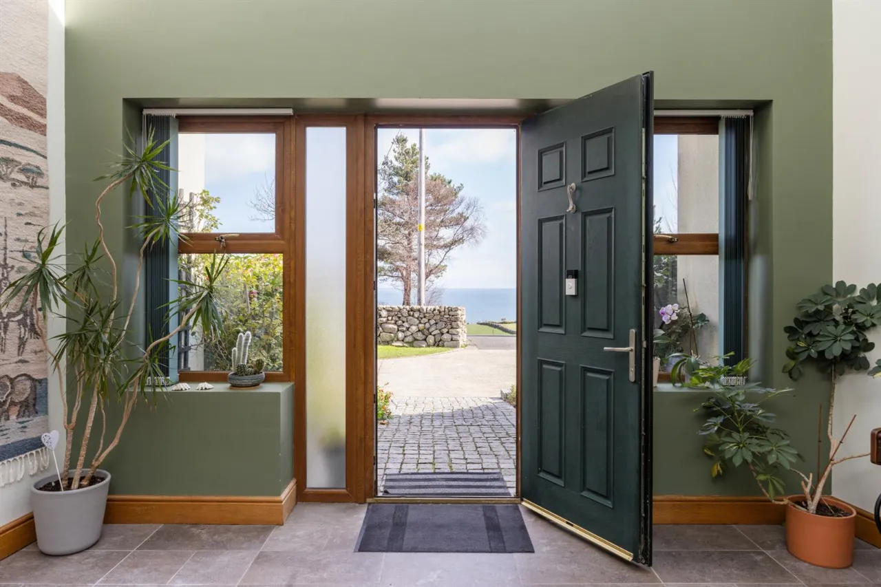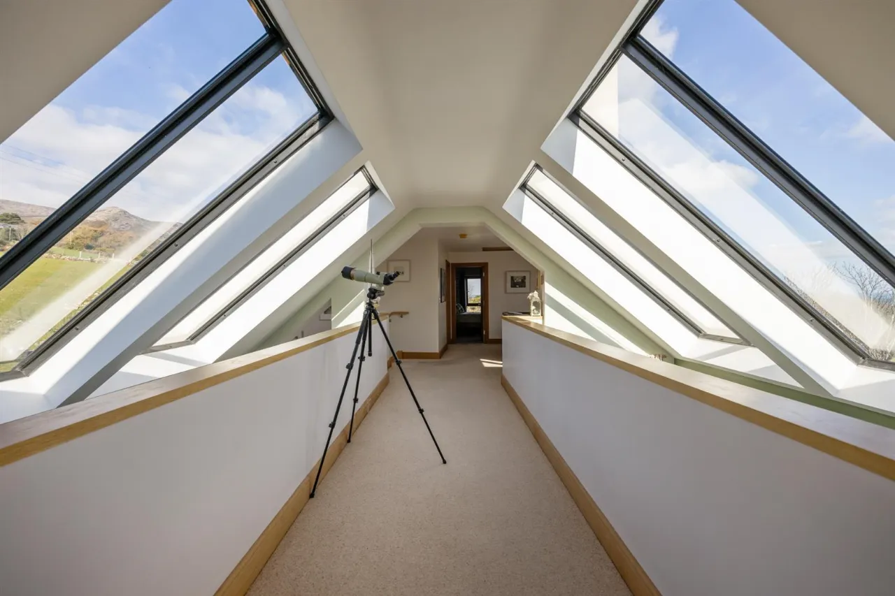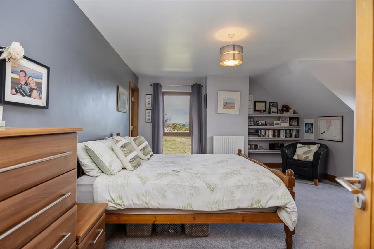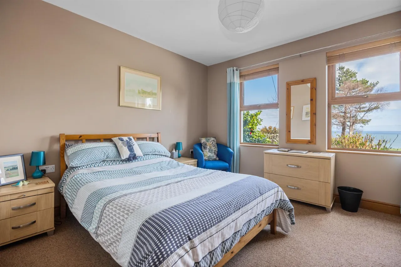 Master bedroom with carpeted flooring and stunning views overlooking the Mourne Mountains and the Irish Sea.