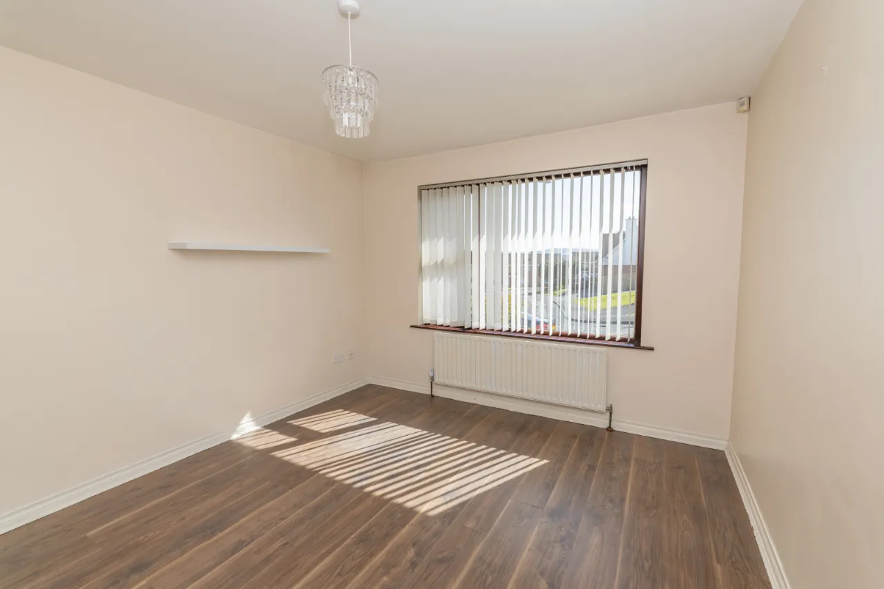 Laminate floor, radiator, window.