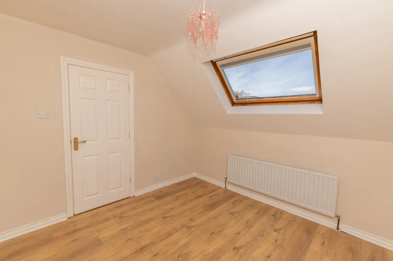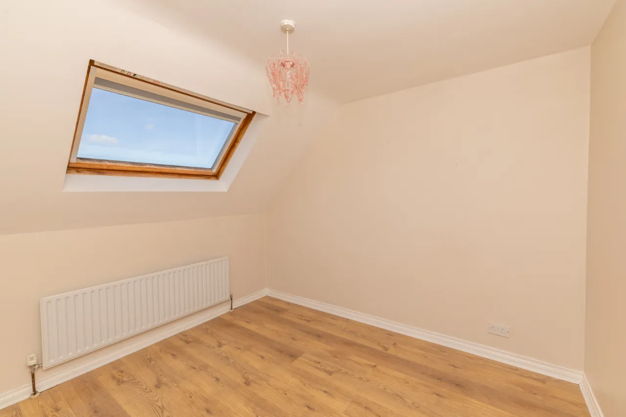 Laminate floor, radiator, velux window.