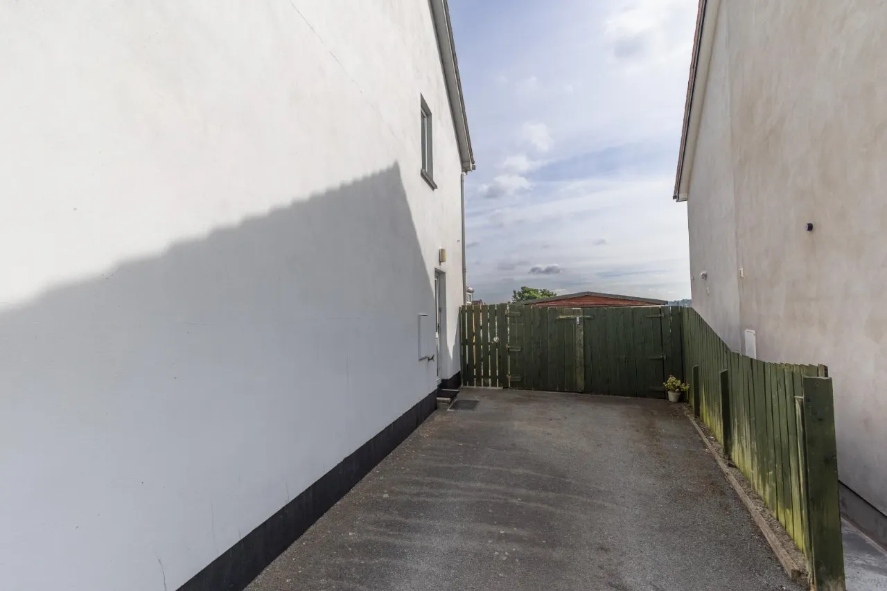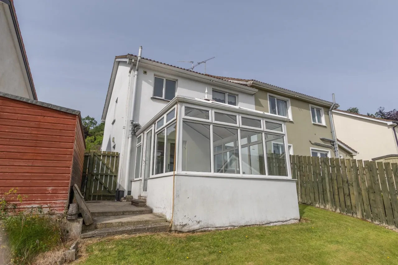 PVC fascia and soffet, off street parking and an outside tap. Wooden fence secure perimeter with side wooden gate providing access to front and rear of property. Large wooden shed, Oil tank and boiler shed.