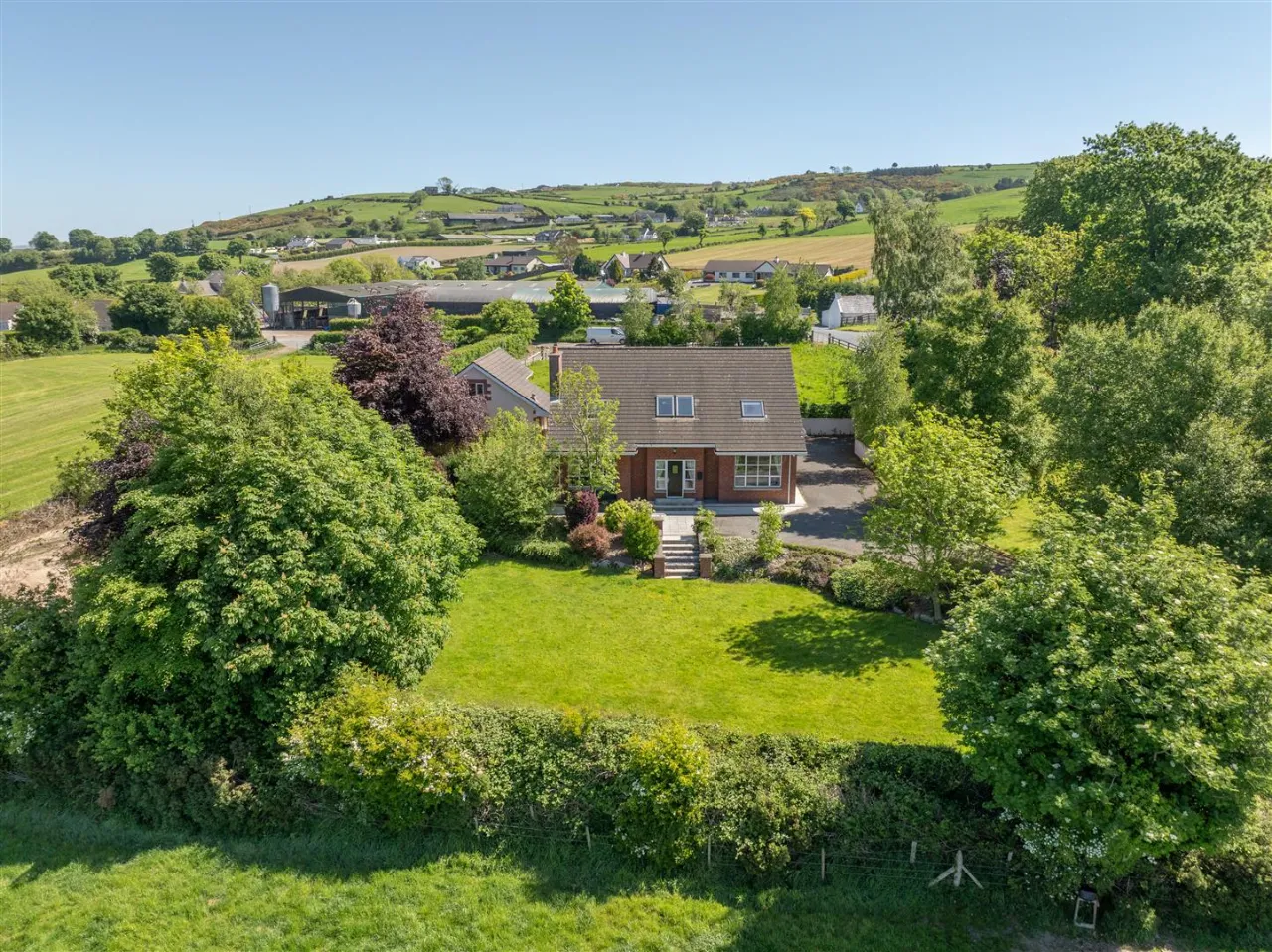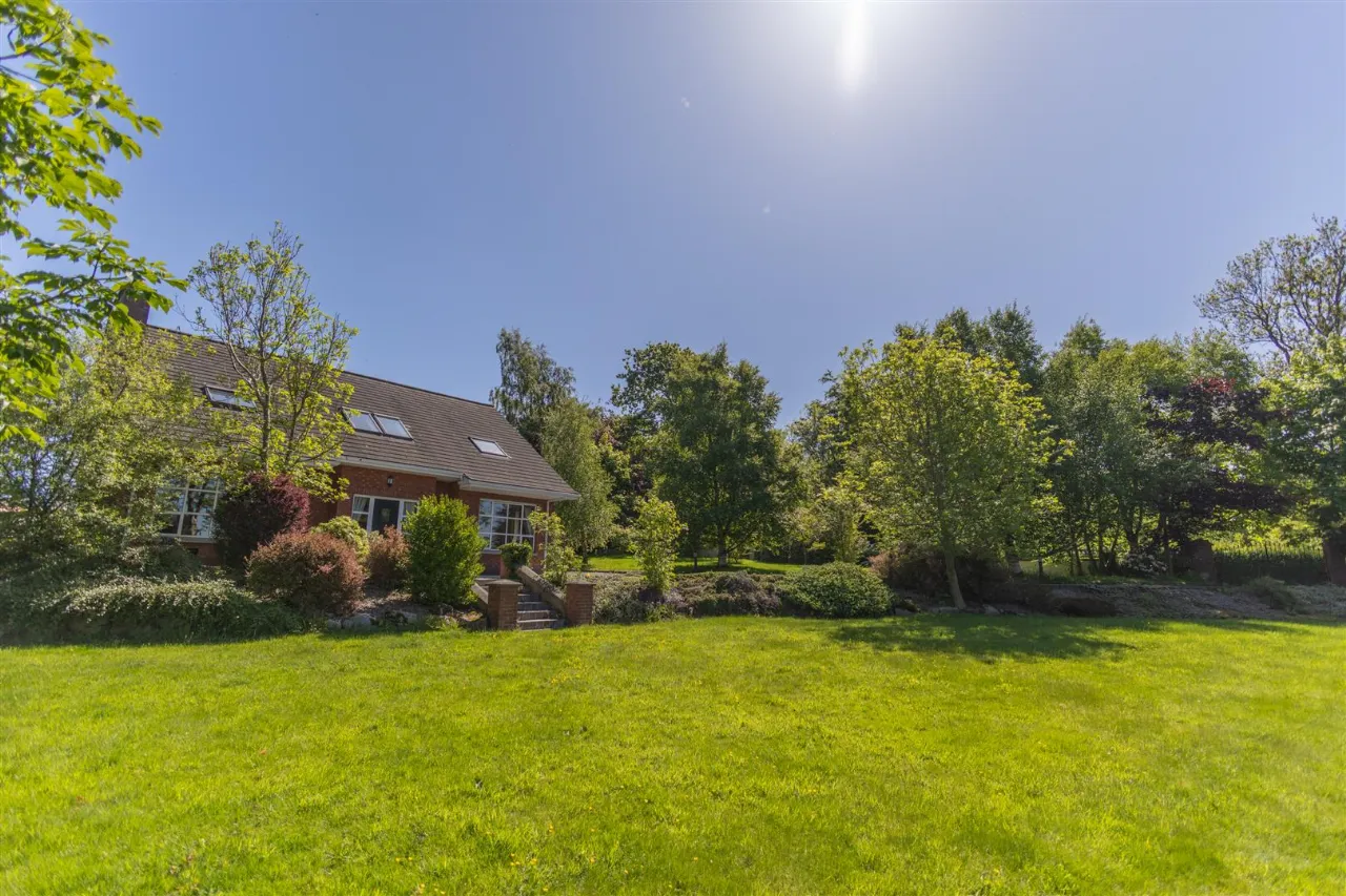 Gated entrance with driveway leading to property. Gardens to front of property with ample parking to side and rear. External lighting.