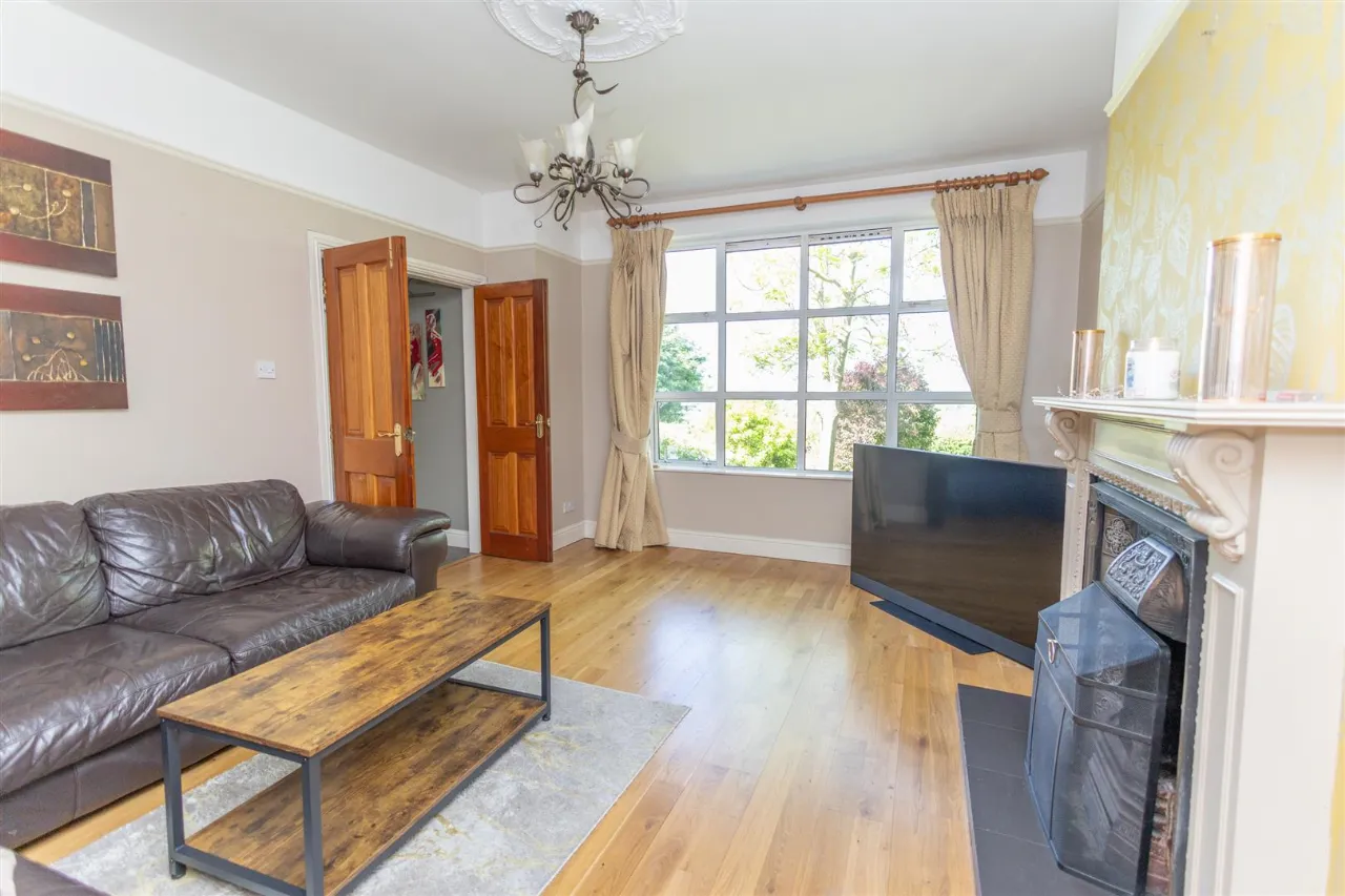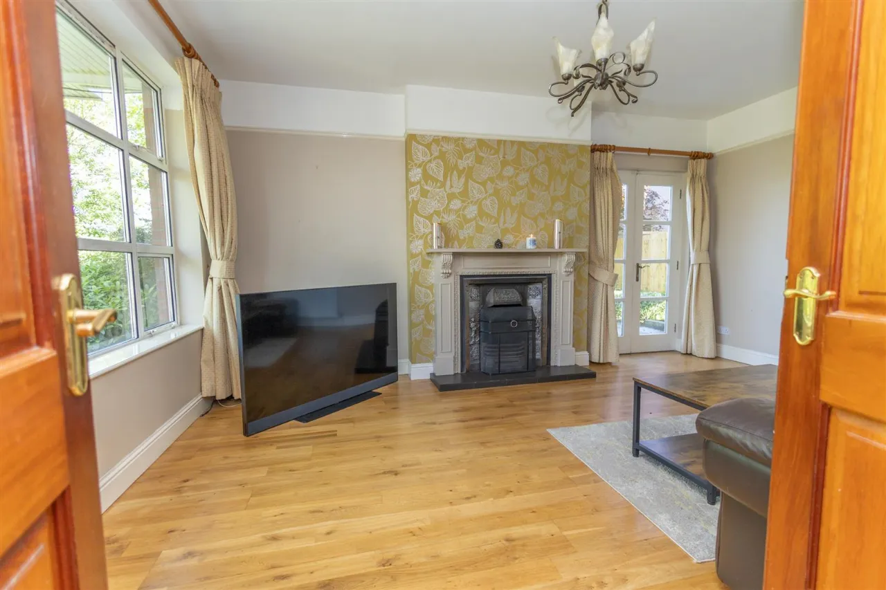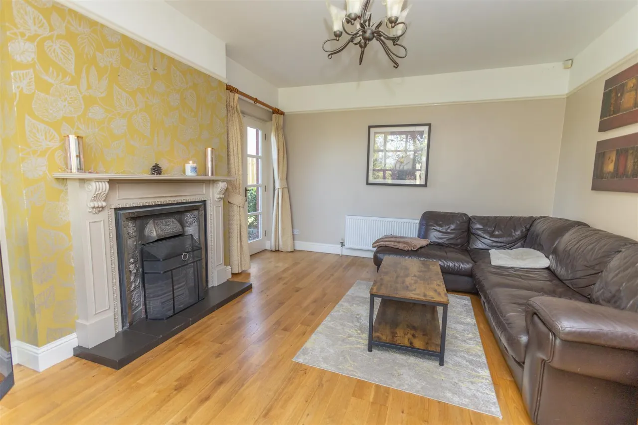 Solid wooden floor. Wooden surround fireplace with iron inset and tiled hearth, solid fuel fire. French doors to patio. Feature lighting. Fiber optic broadband