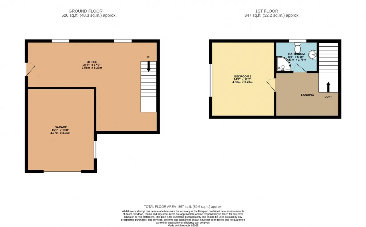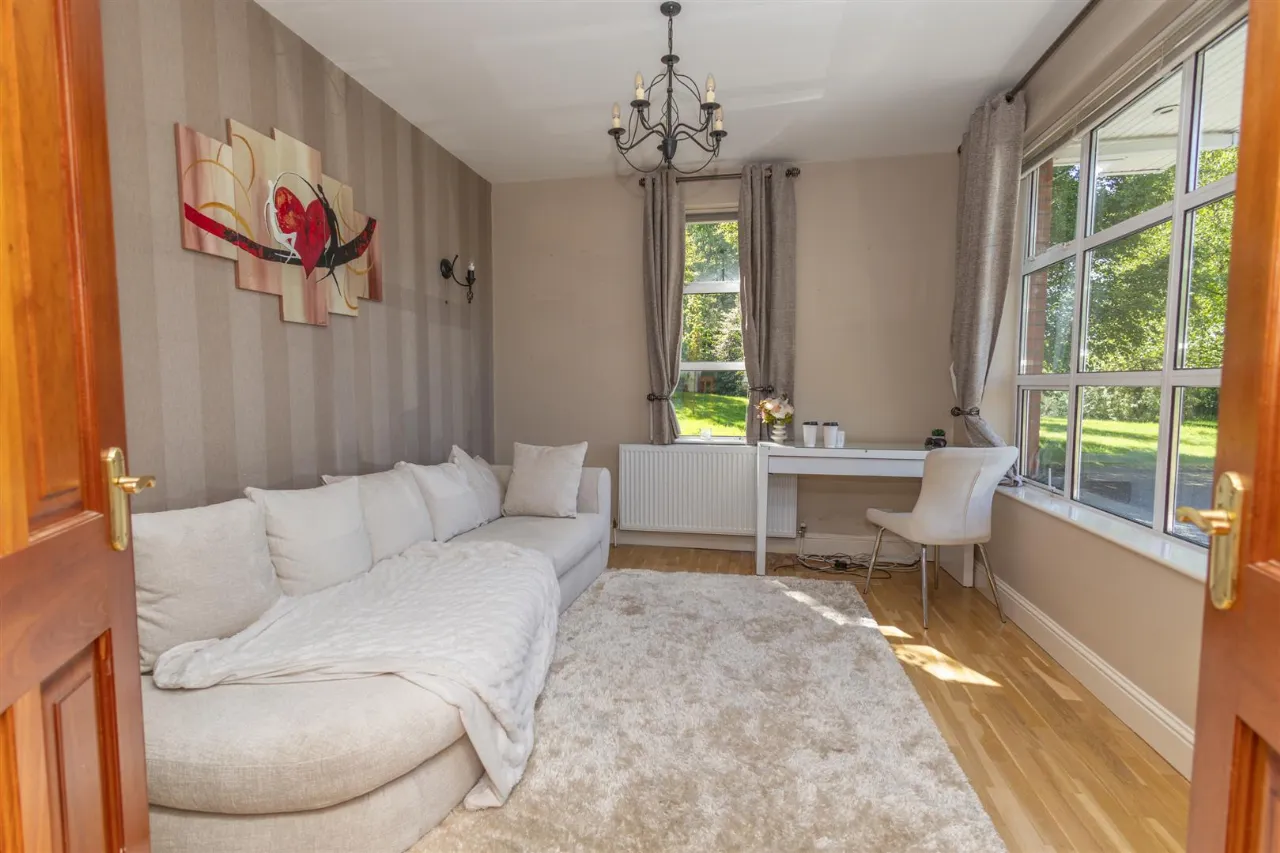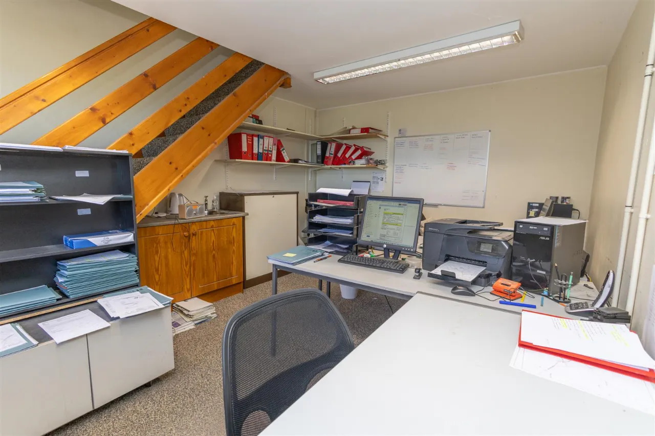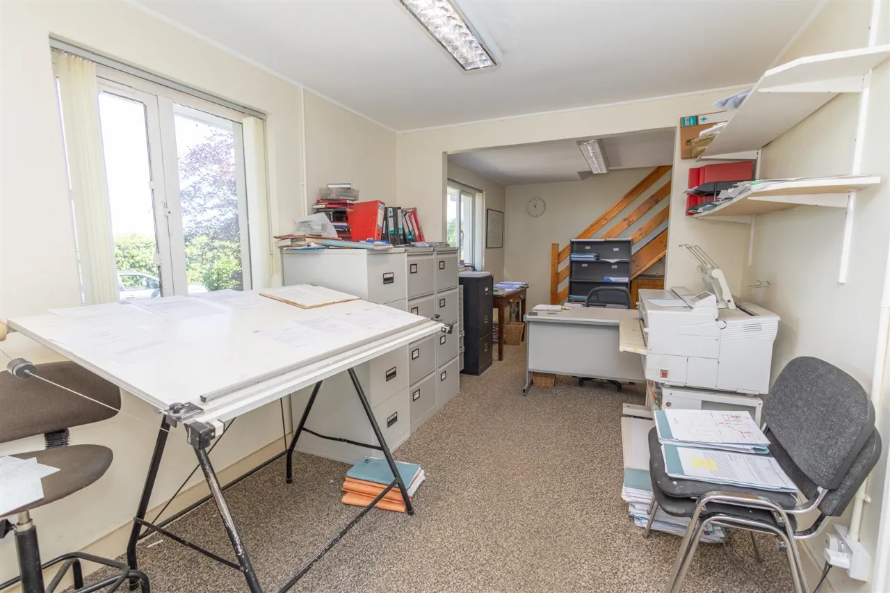 Detached office located to the rear of the garden. Carpet flooring, fitted out for office use. Upstairs living accommodation & bathroom.