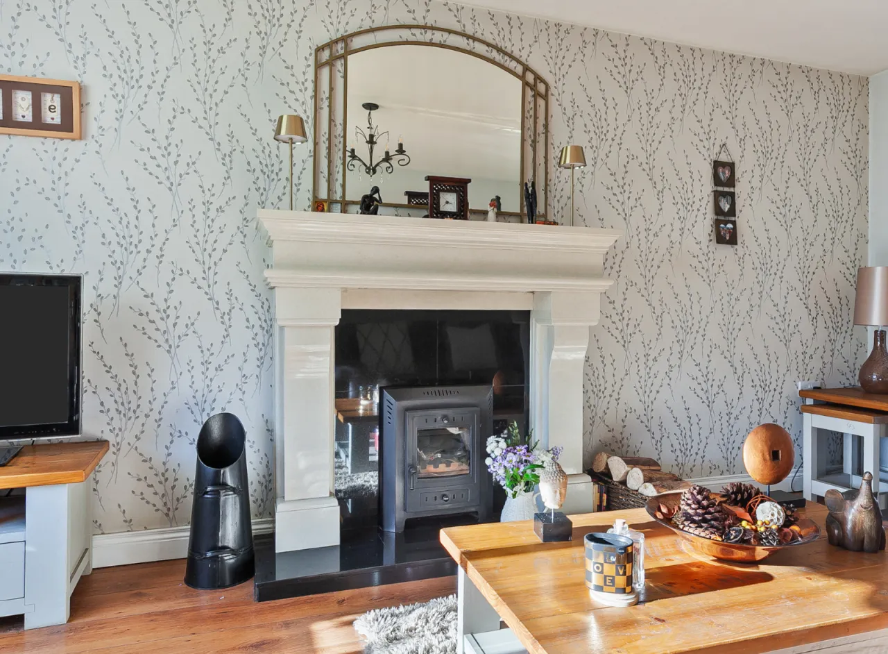 Walk in shower, low flush WC, sink with mixer taps, fully tiled floor and walls