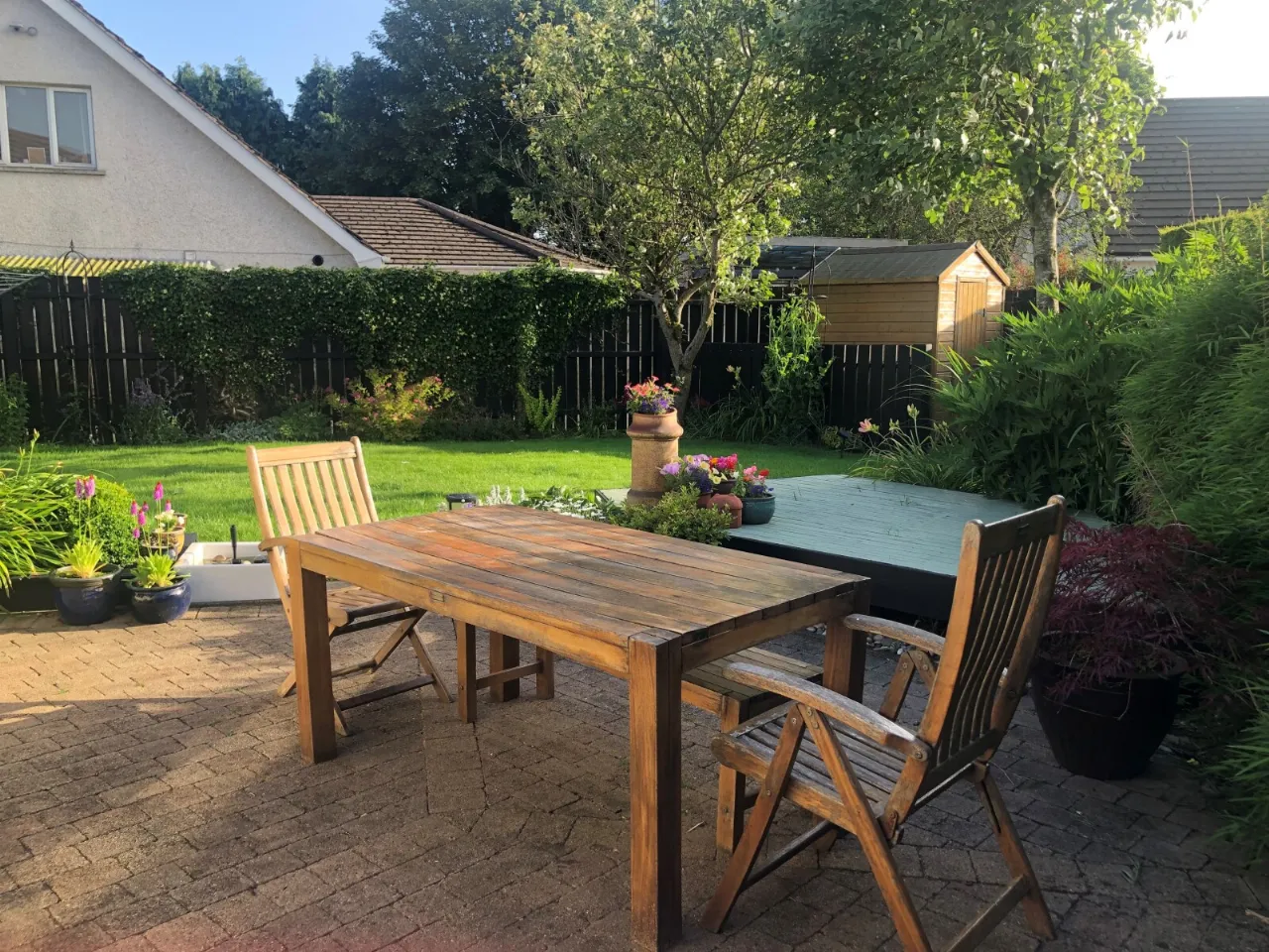 Enclosed south facing garden with paved patio area, garden laid in grass, pleasant range of shrubbery and hedges. Electric power points, shed storage and bordering fencing. To the front there is driveway parking for multiple vehicles, garden laid in grass, bin storage and outside tap.