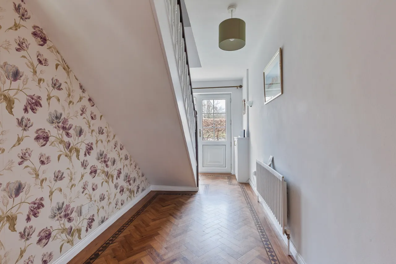 uPVC Front door with glass side panels and feature Amtico herringbone floor.